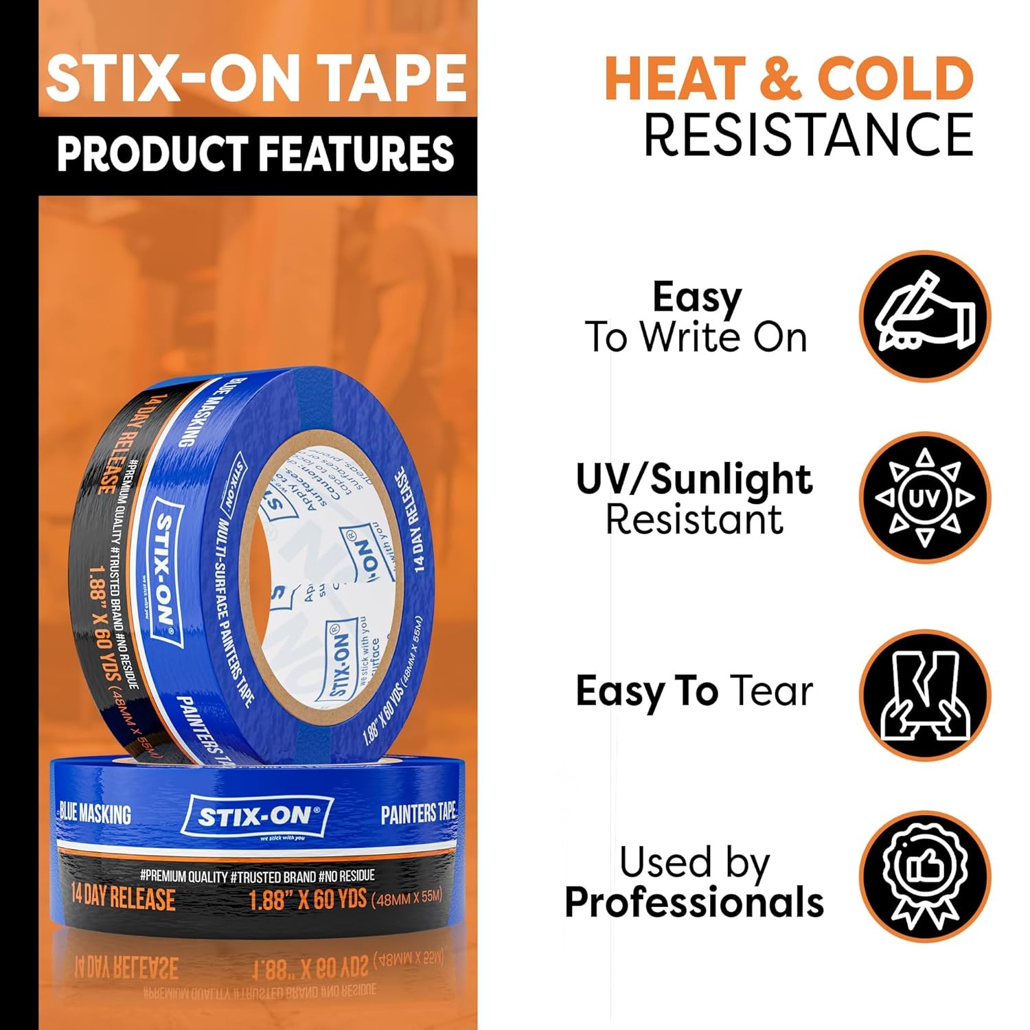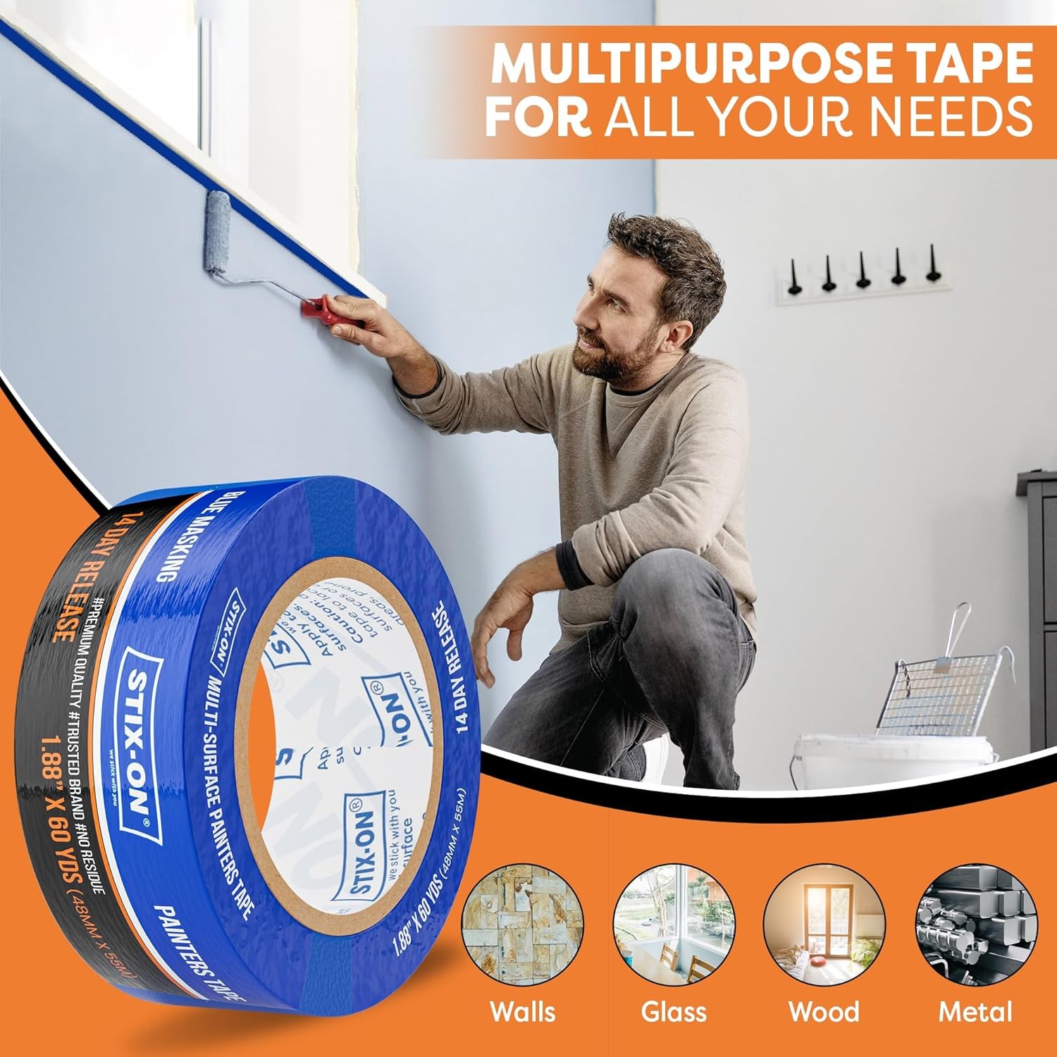 2 Inch x 60 Yds Blue Painter s Tape Fine Line, Residue-Free Masking Tape