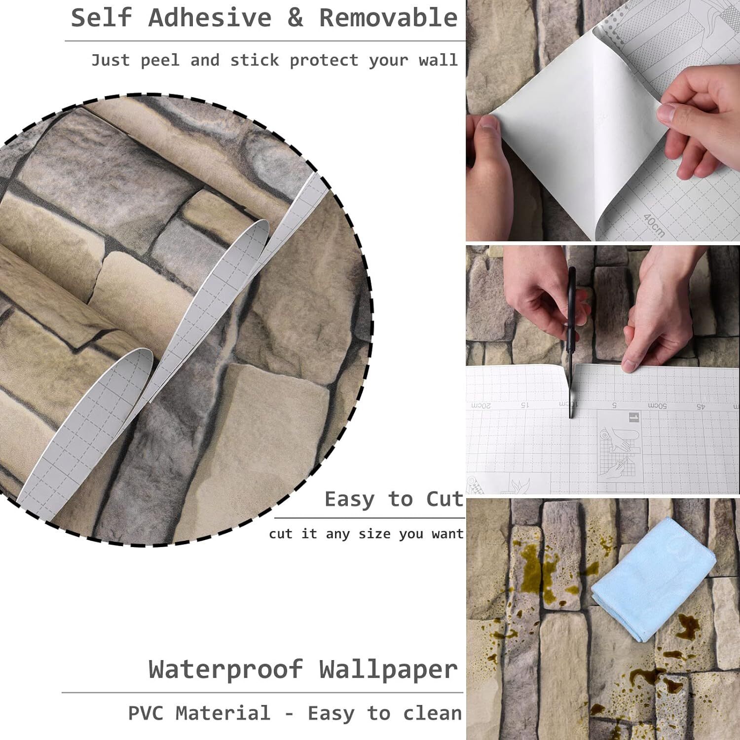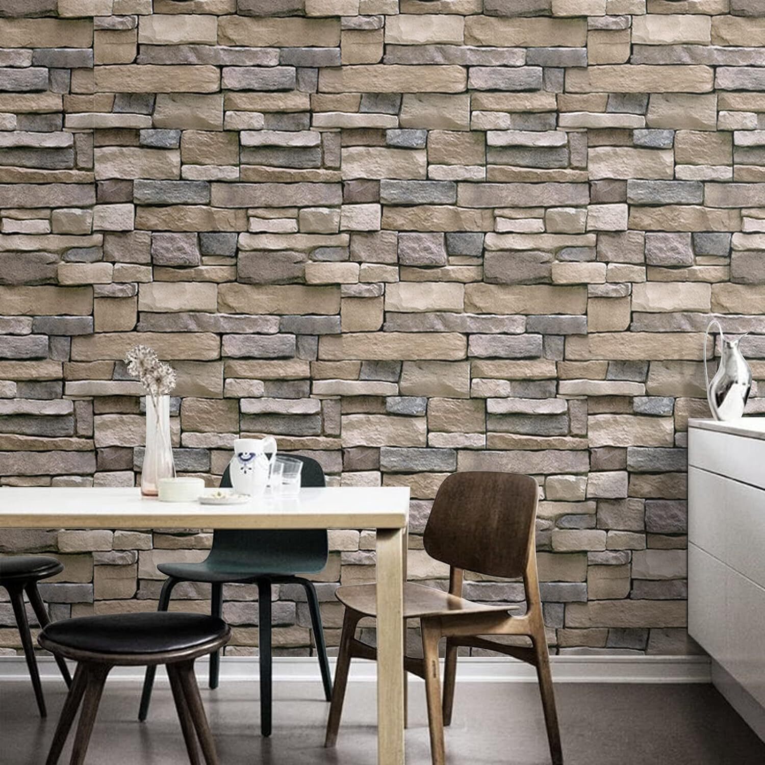 Stone Wallpaper Peel and Stick Grey Faux Brick Self-Adhesive Removable Vinyl W