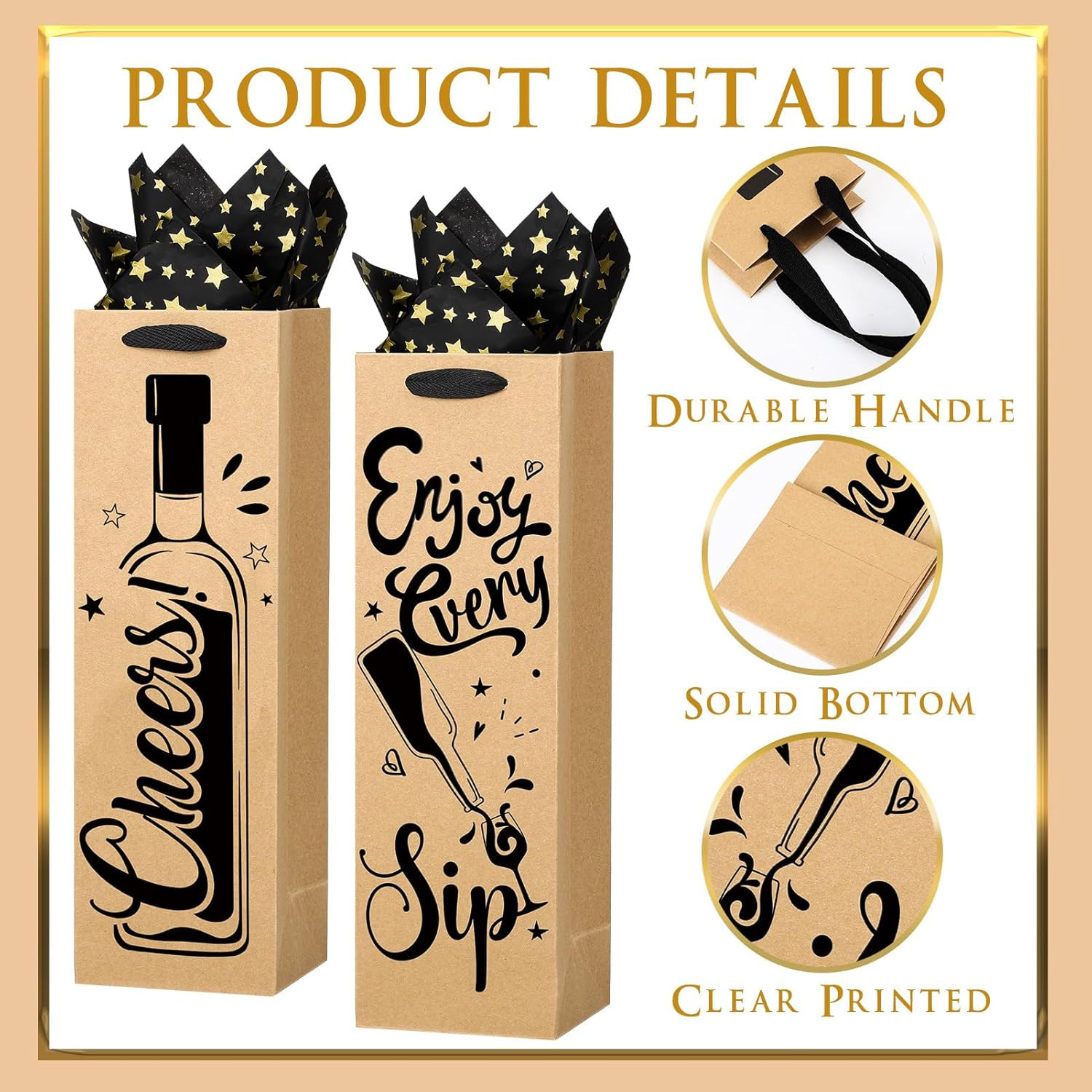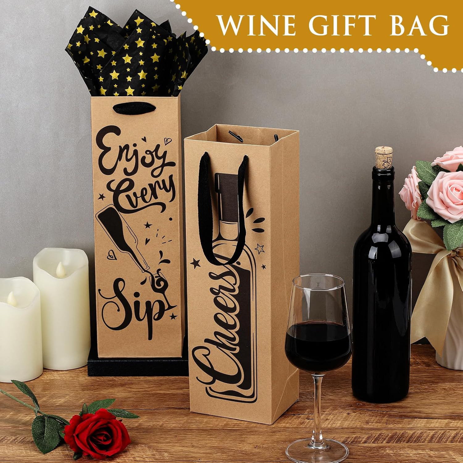 20 PCS Wine Gift Bags with Handles and Tissue Paper - Kraft Wine Bottle Bags for