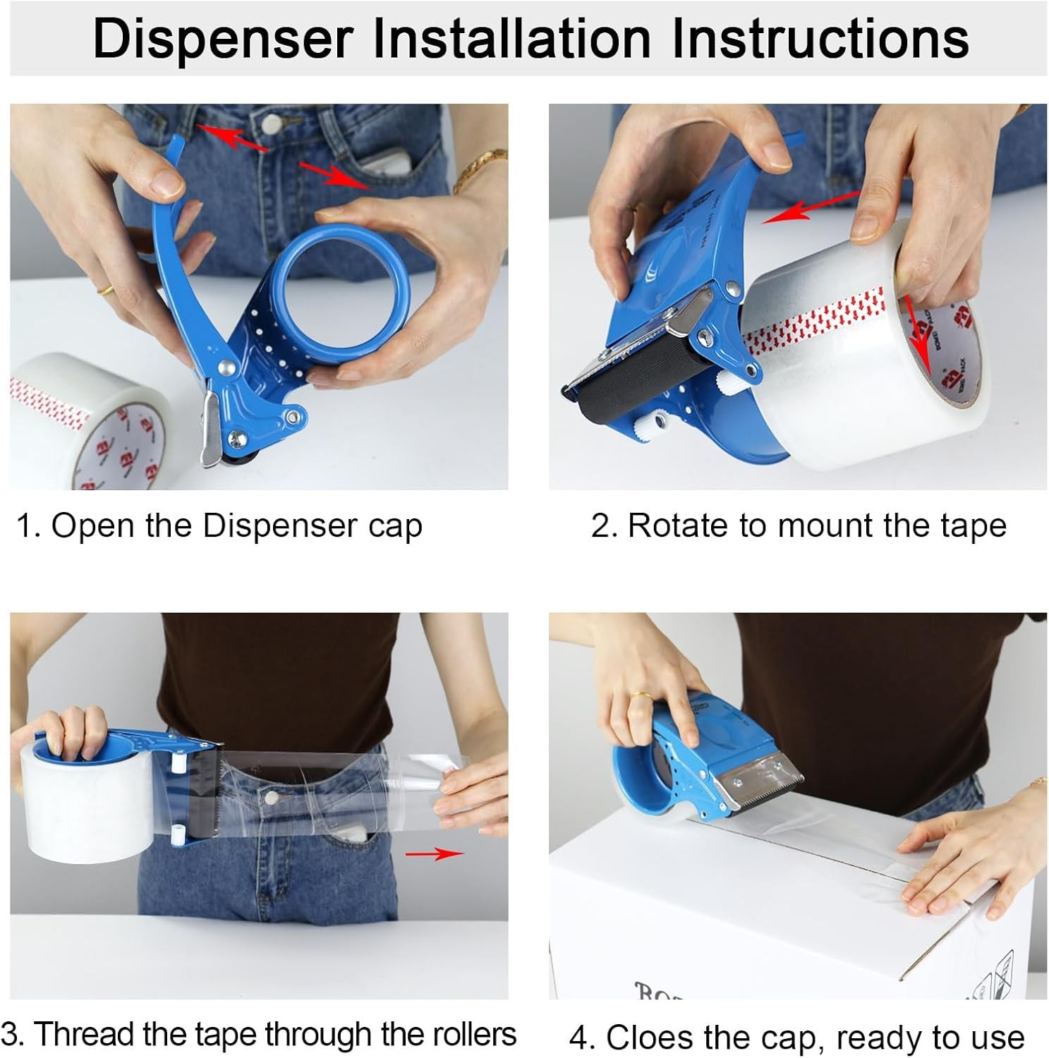 3 Inch Wide Clear Packing Tape with Dispenser,2.4 Mil x 55 Yards Heavy Duty...