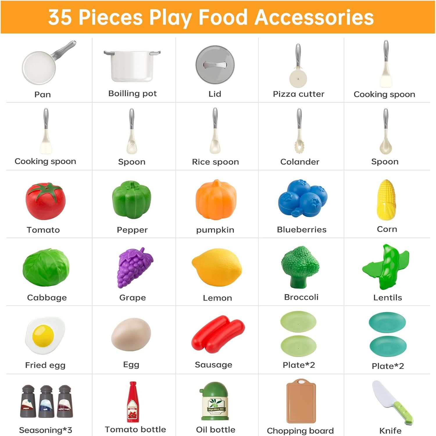 35Pcs Kids Kitchen Toy Accessories, Toddler Pretend Cooking 35Pcs, White