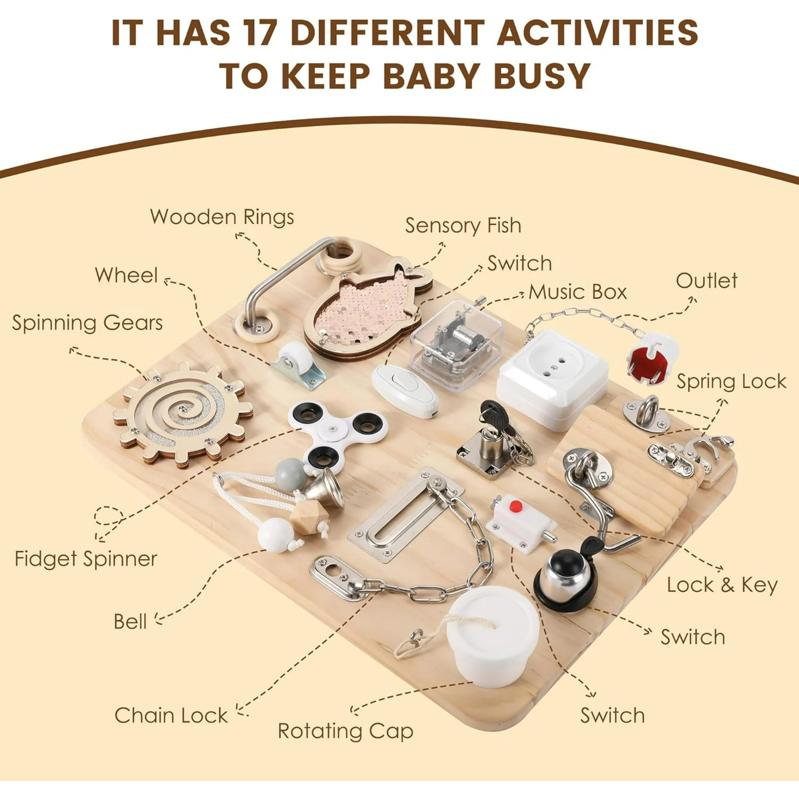 Wooden Montessori Busy Board Sensory Activity Toys for Autism ADHD Kids Toddlers