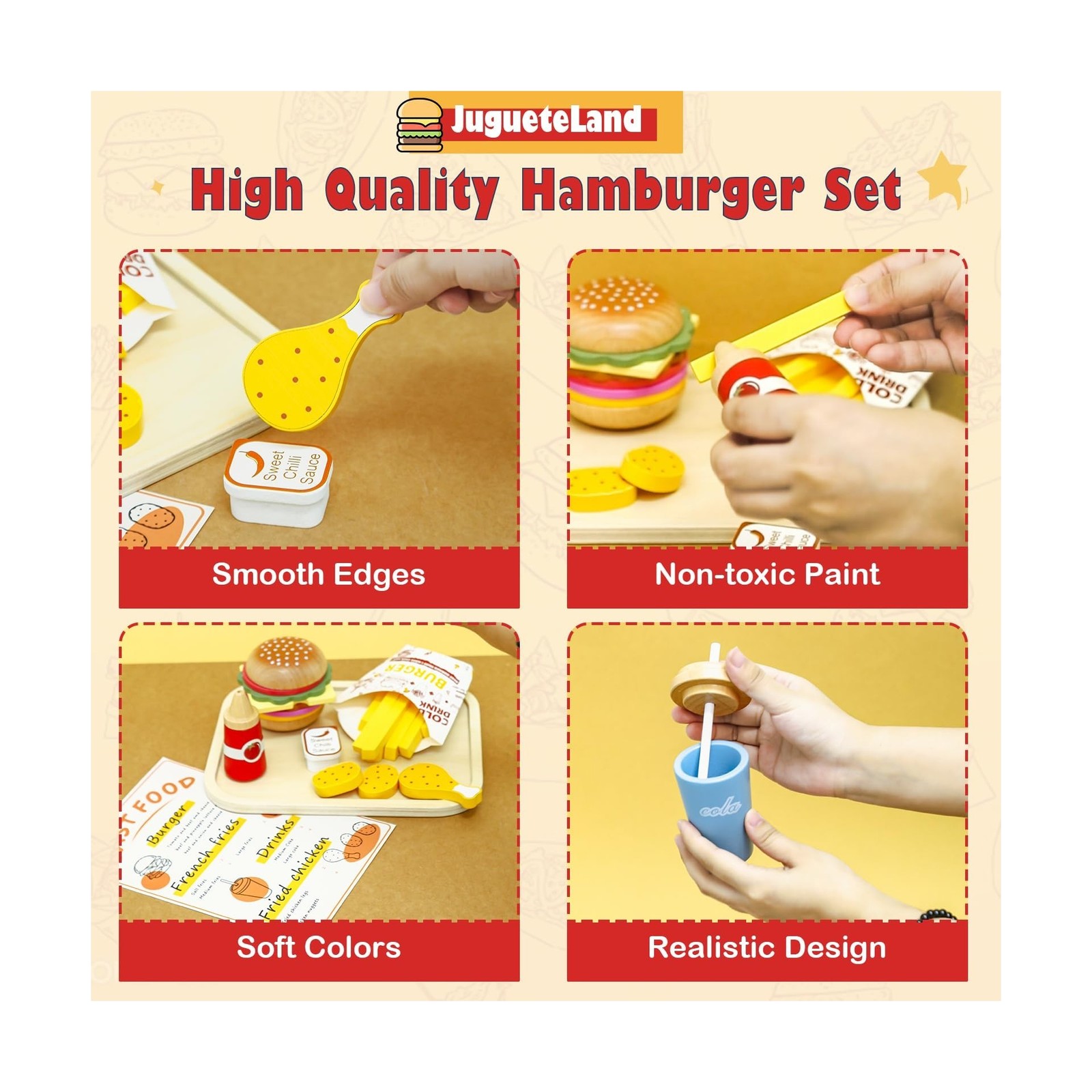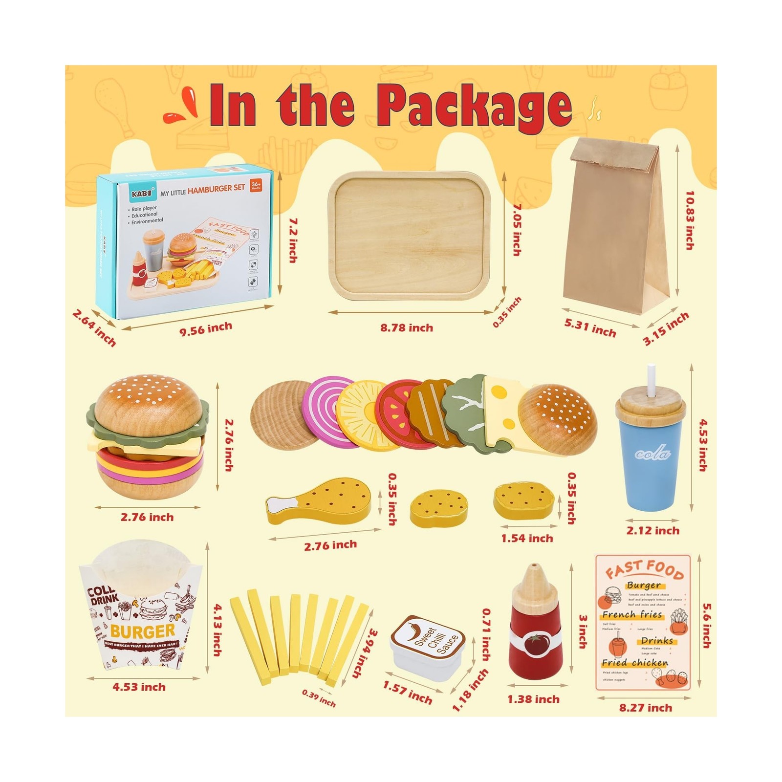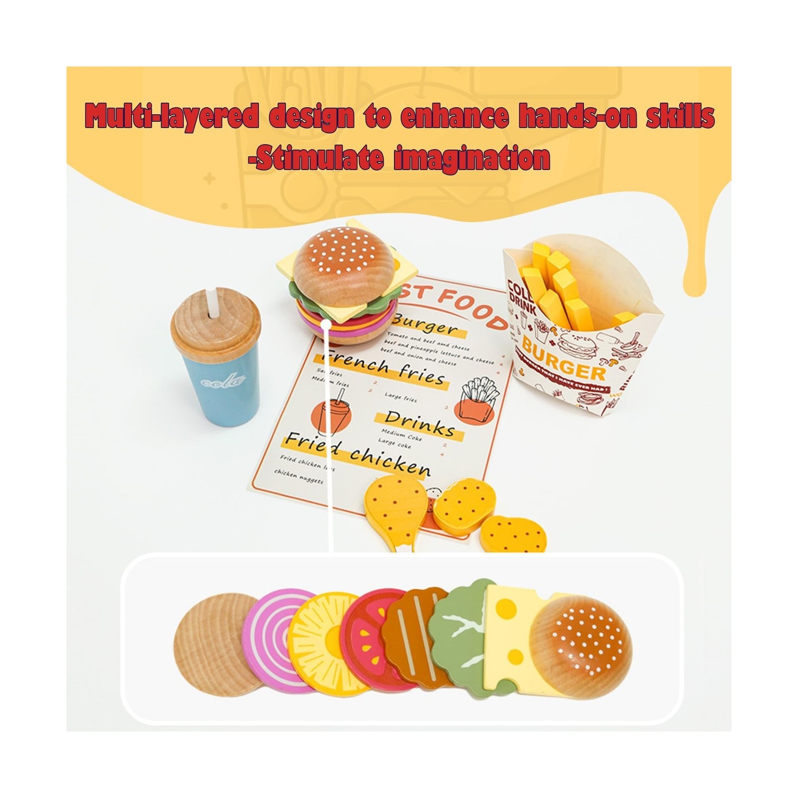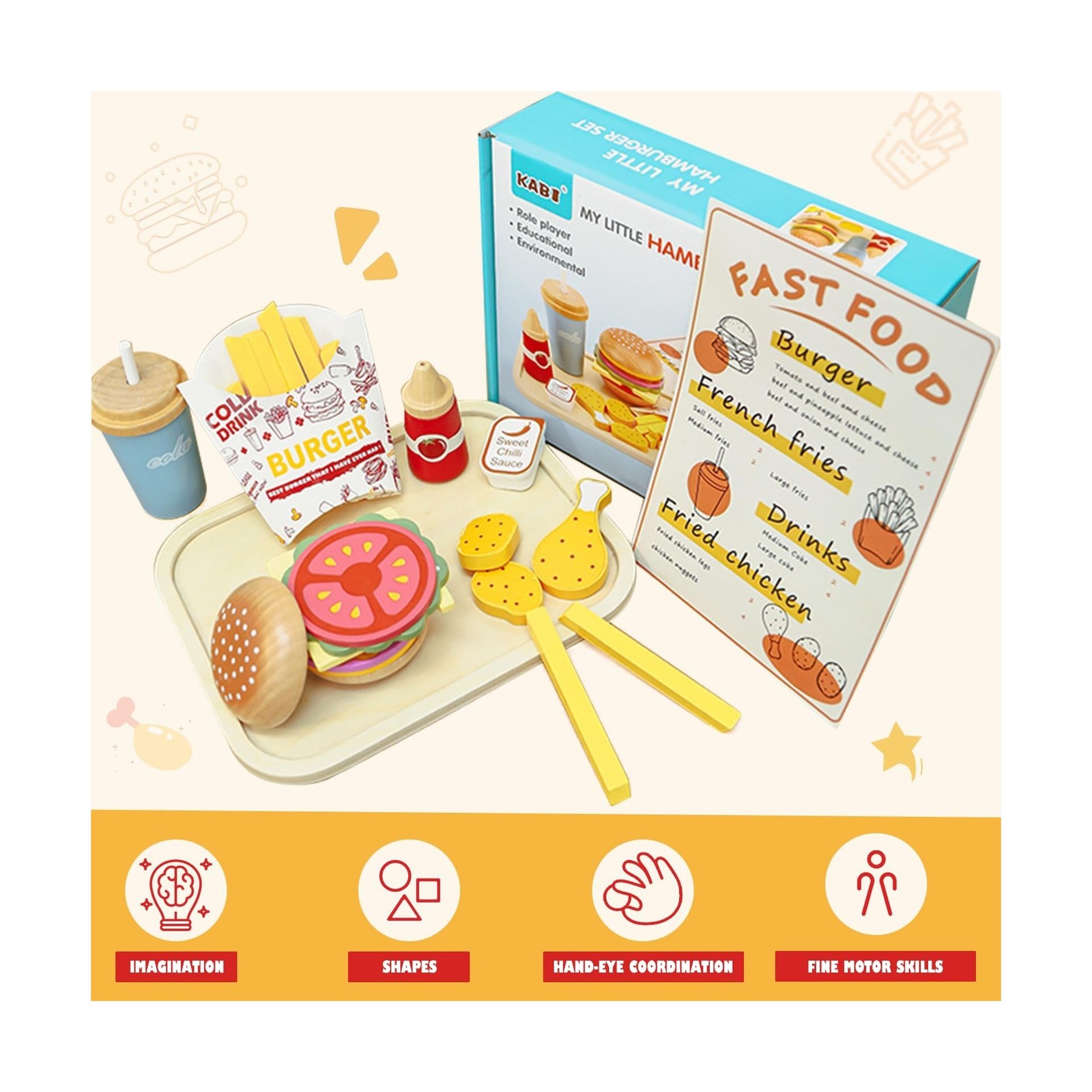 Wooden Play Fast Food Set Play Kitchen Accessories, Pretend Play Fo... Fast Ship