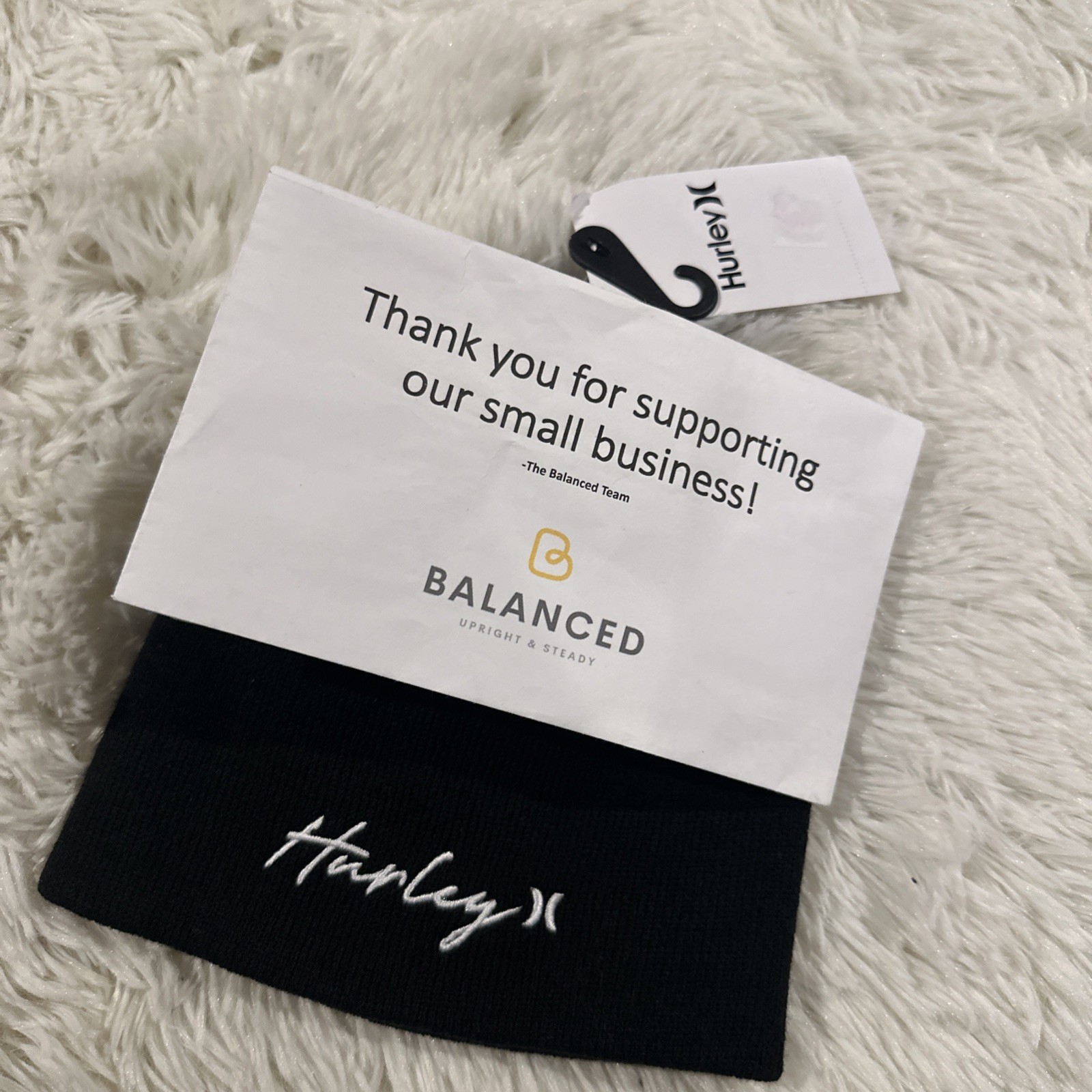 как выглядит Hurley womens Script Staple Beanie Black White logo NWt NEW one size фото