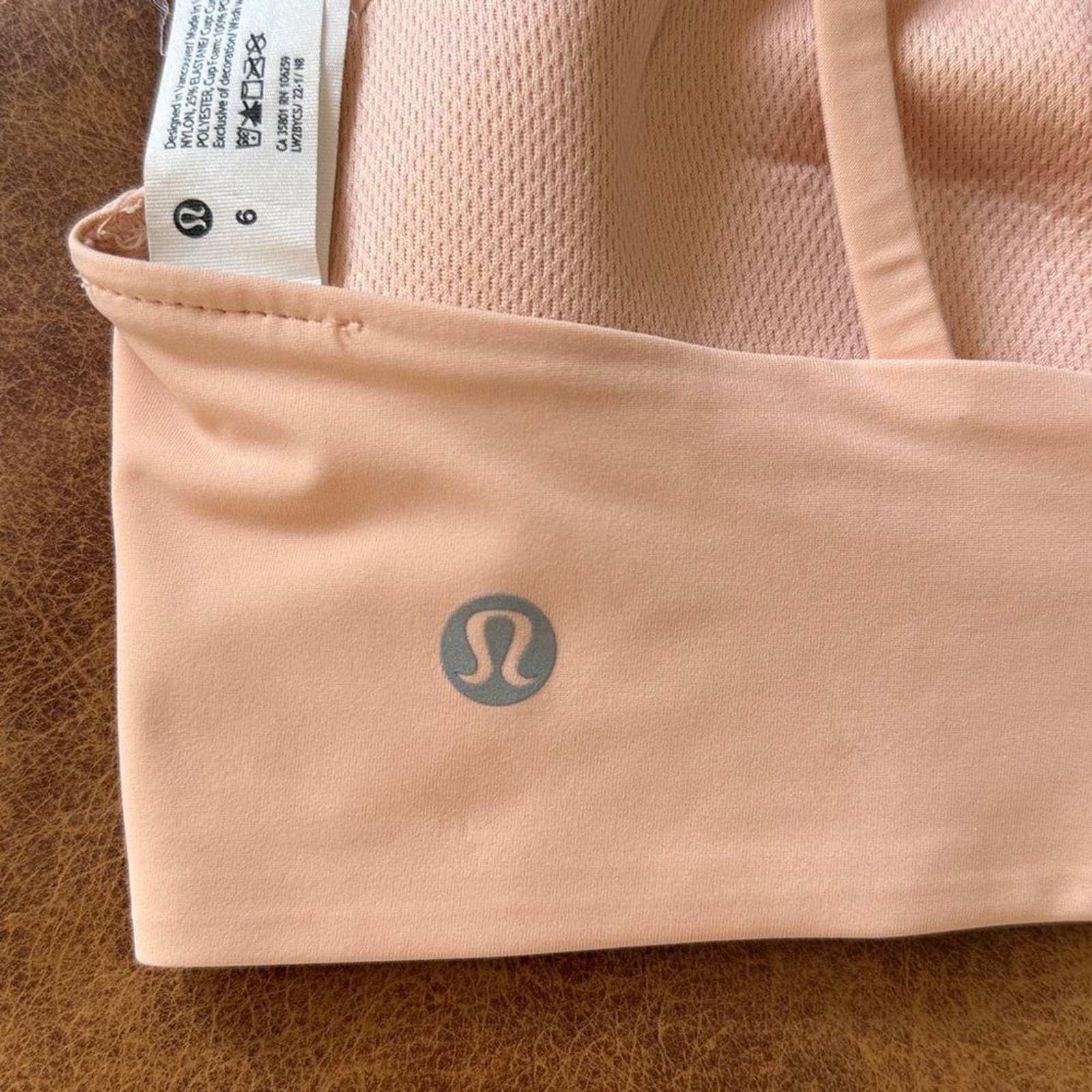 как выглядит Lululemon Like a Cloud Bra Light Support sz 6 B C Cup Peach Satin фото