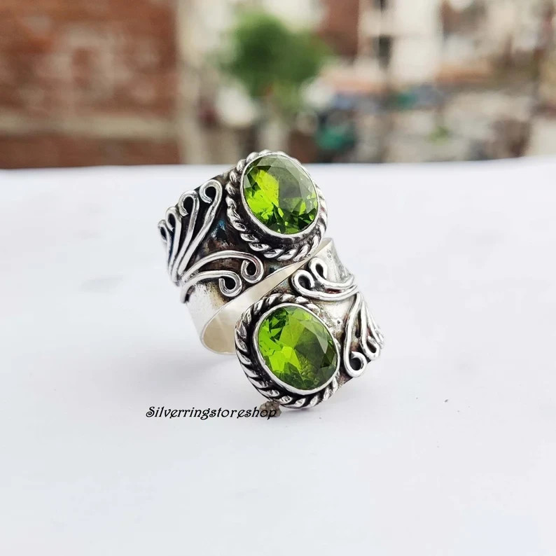 как выглядит Peridot stone ring, 925 Sterling silver ring, Statement ring, Fidget rinAll Size фото