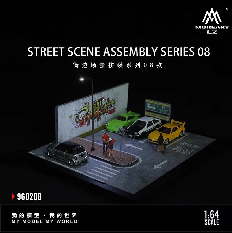 1/64 Diorama Diecast Garage Model LED Japanese Parking Lot Model Display Case US