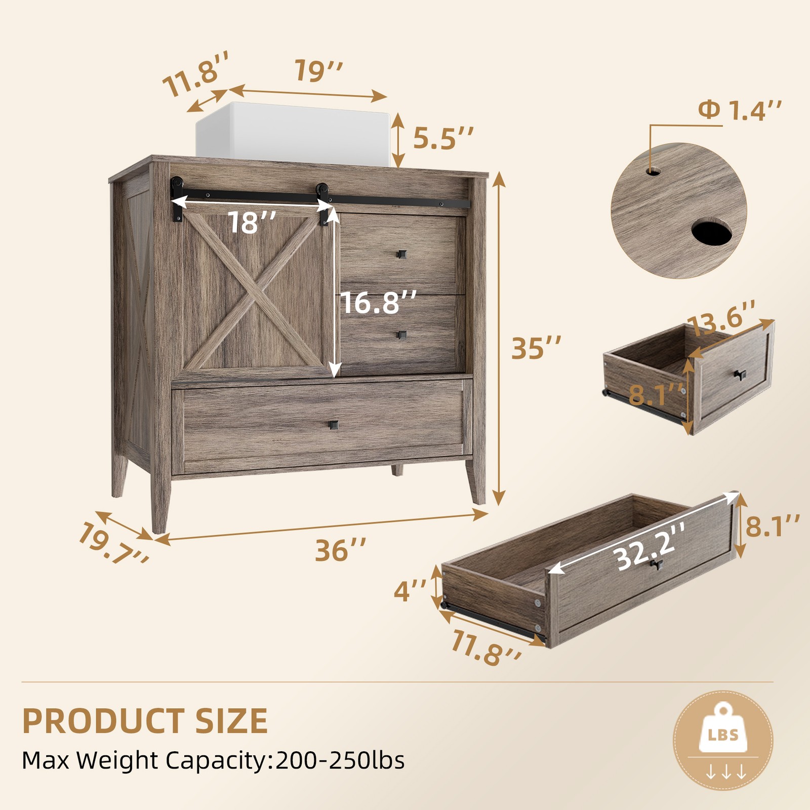 36 Bathroom Vanity Combo Storage Cabinet Freestanding w/Sink Set Space-Saving