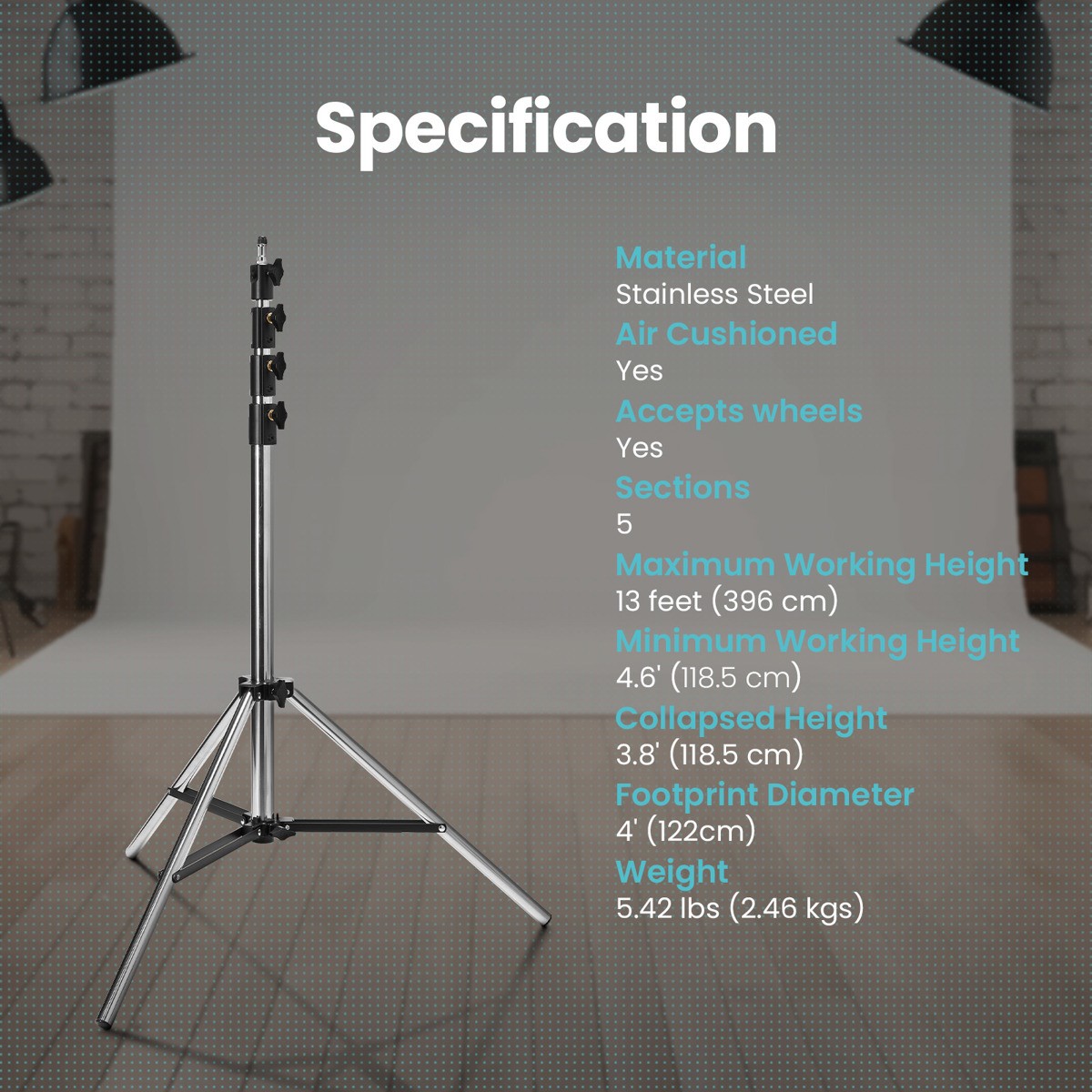Flashpoint Pro Air-Cushioned Heavy-Duty Light Stand Chrome, 13'
