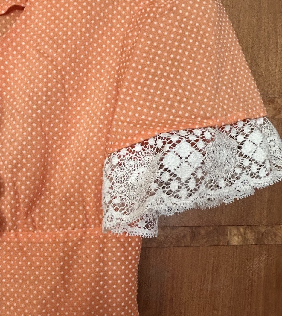 как выглядит VTG 70 s Handmade Prairie Peach Swiss Dot MaxiDress XXS Lace At Chest , Sleeves фото