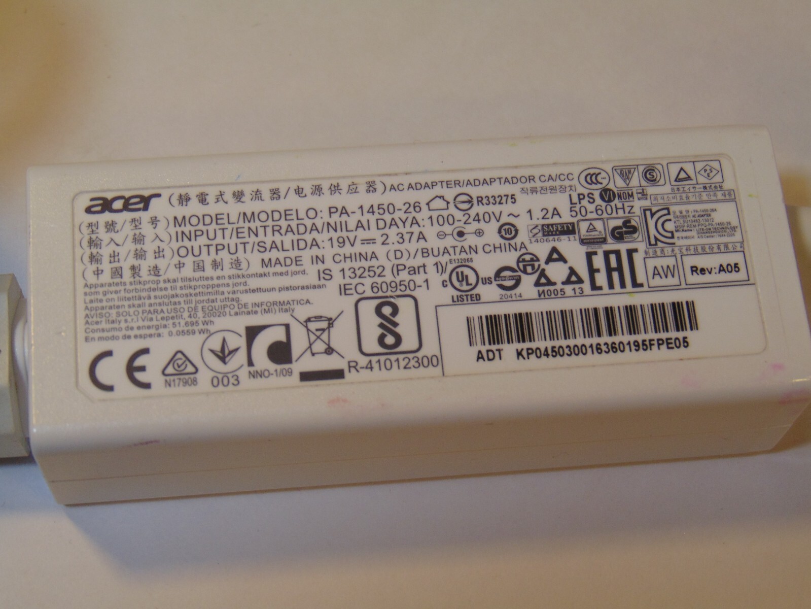 как выглядит ACER Laptop Notebook Charger AC Adapter PA-1450-26 19v 2.37A Power Plug White фото