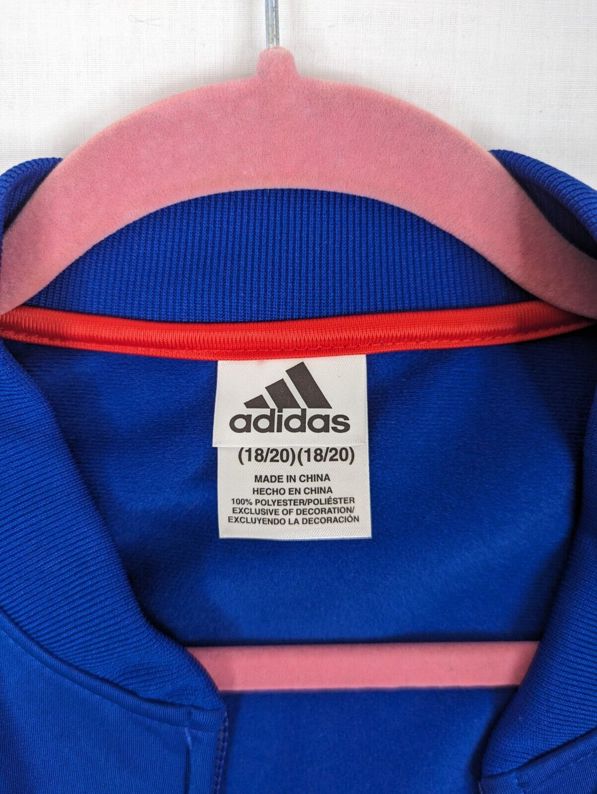 Adidas Track Jacket Youth XL 18/20 Blue Red 3 Stripes Full Zip Lightweight