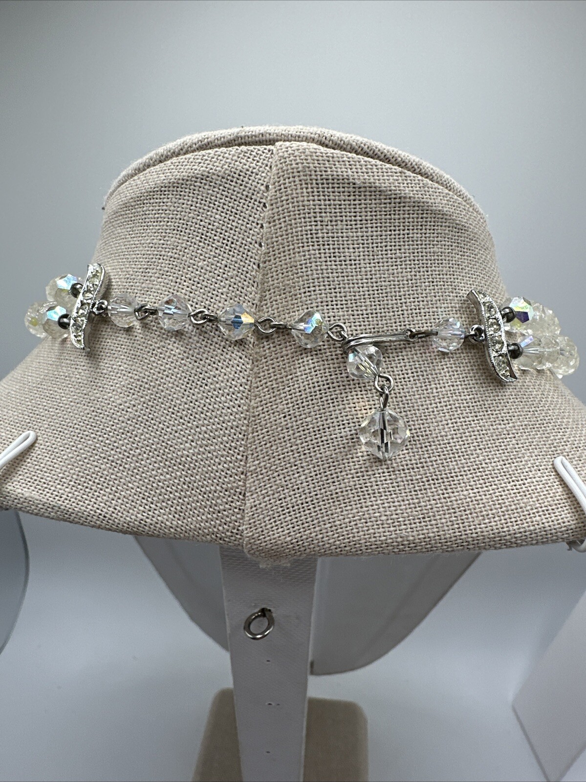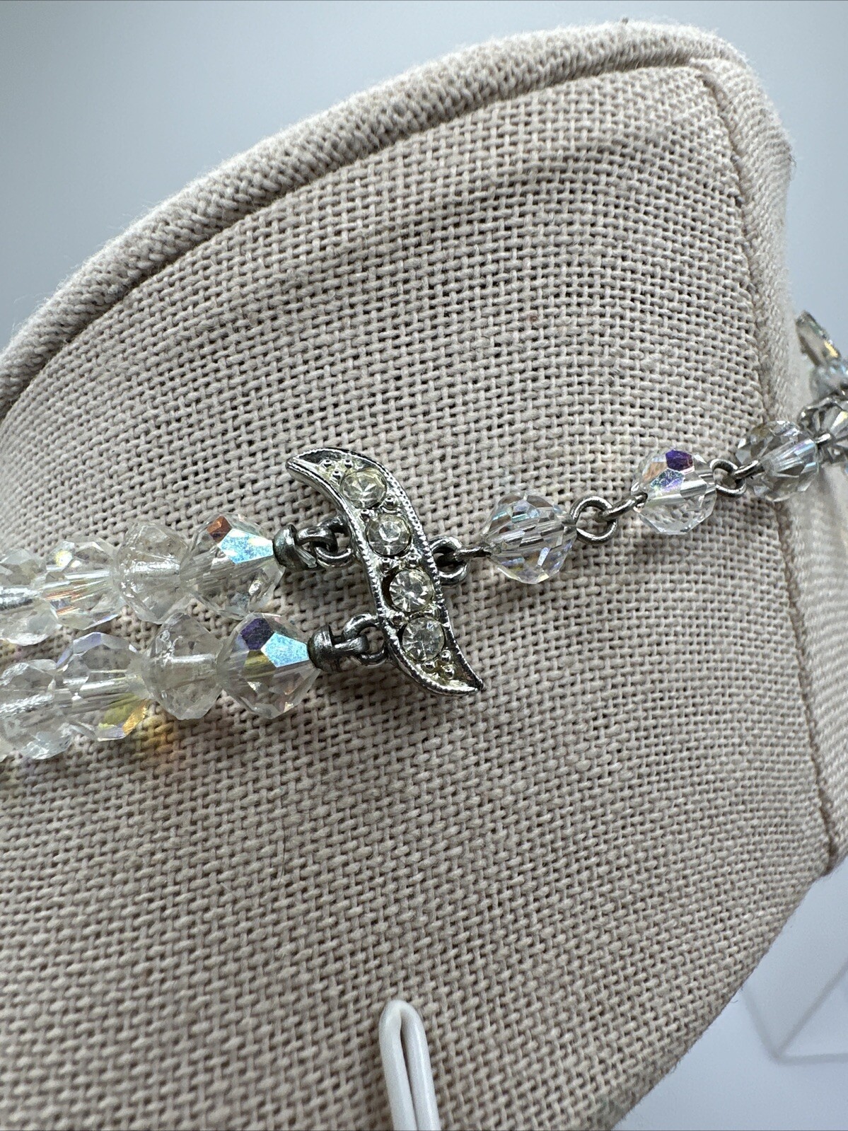 как выглядит Vintage 2 Strand Aurora Borealis Clear Crystal Layered Choker Necklace 16-18 фото