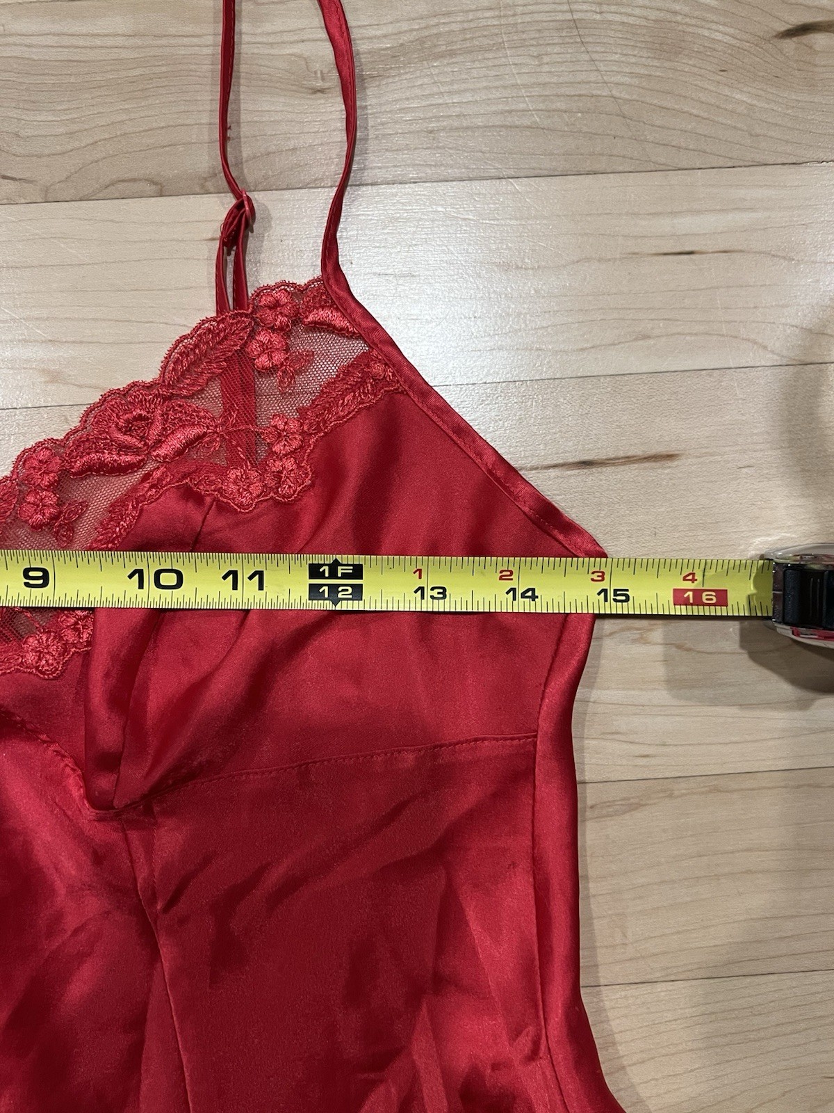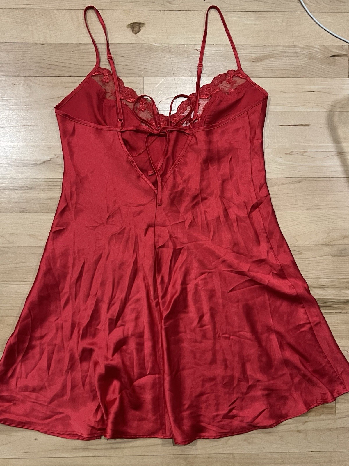 как выглядит Vintage Red Satin Lace Slip Dress  Adjustable Straps, Tie Back Small фото