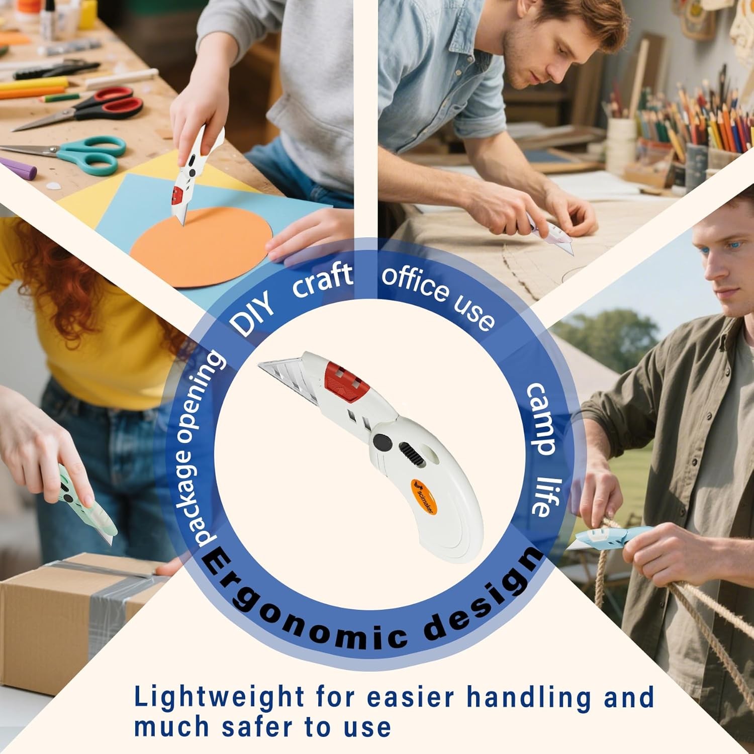 4 Pack Folding Box Cutters Lightweight Utility Knives with Back-Lock 10 Ex