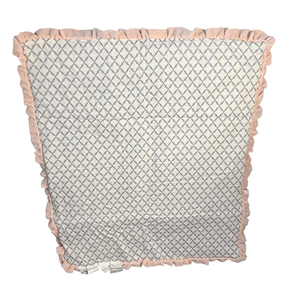 The Peanutshell 2 Piece Bedding Set Pale Pink Gray 3D Flowers Floral Quilt Skirt