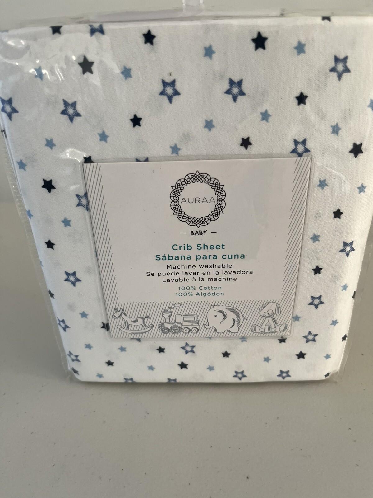 Auraa baby 100 Cotton White With Blue Stars Crib Sheet