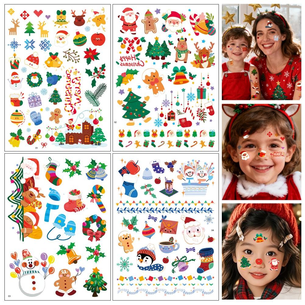 4 Sheets Christmas Tattoo Stickers Temporary Children Cute Cartoon Transfer