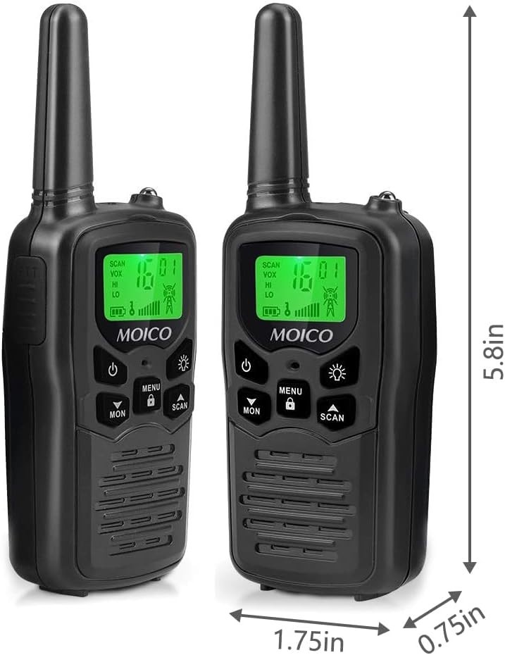 Compact Long Range Family Walkie Talkies with Backlit LCD Flashlight - 2 Pack