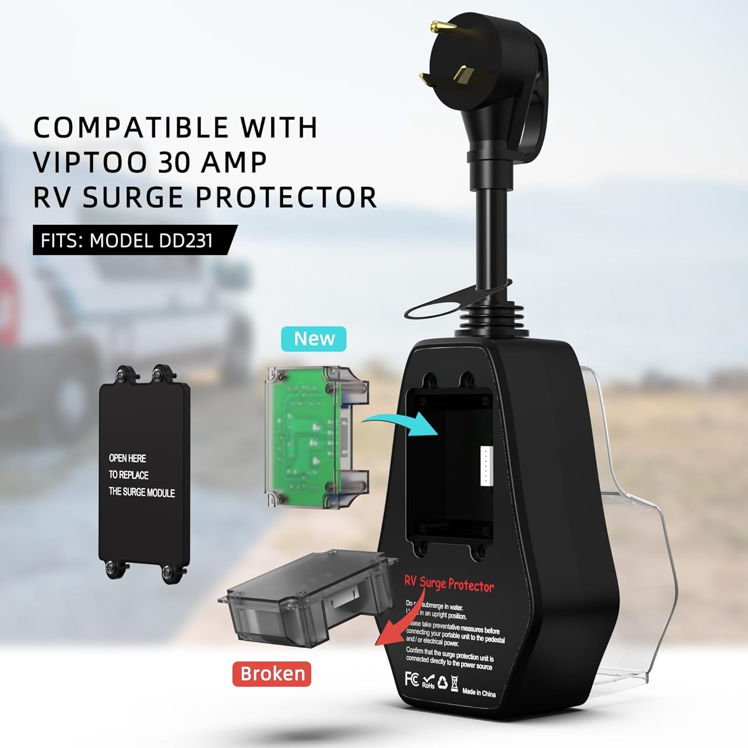RV Surge Protector 50 Amp with Replaceable Module, 12000 Joules Circuit Analyzer