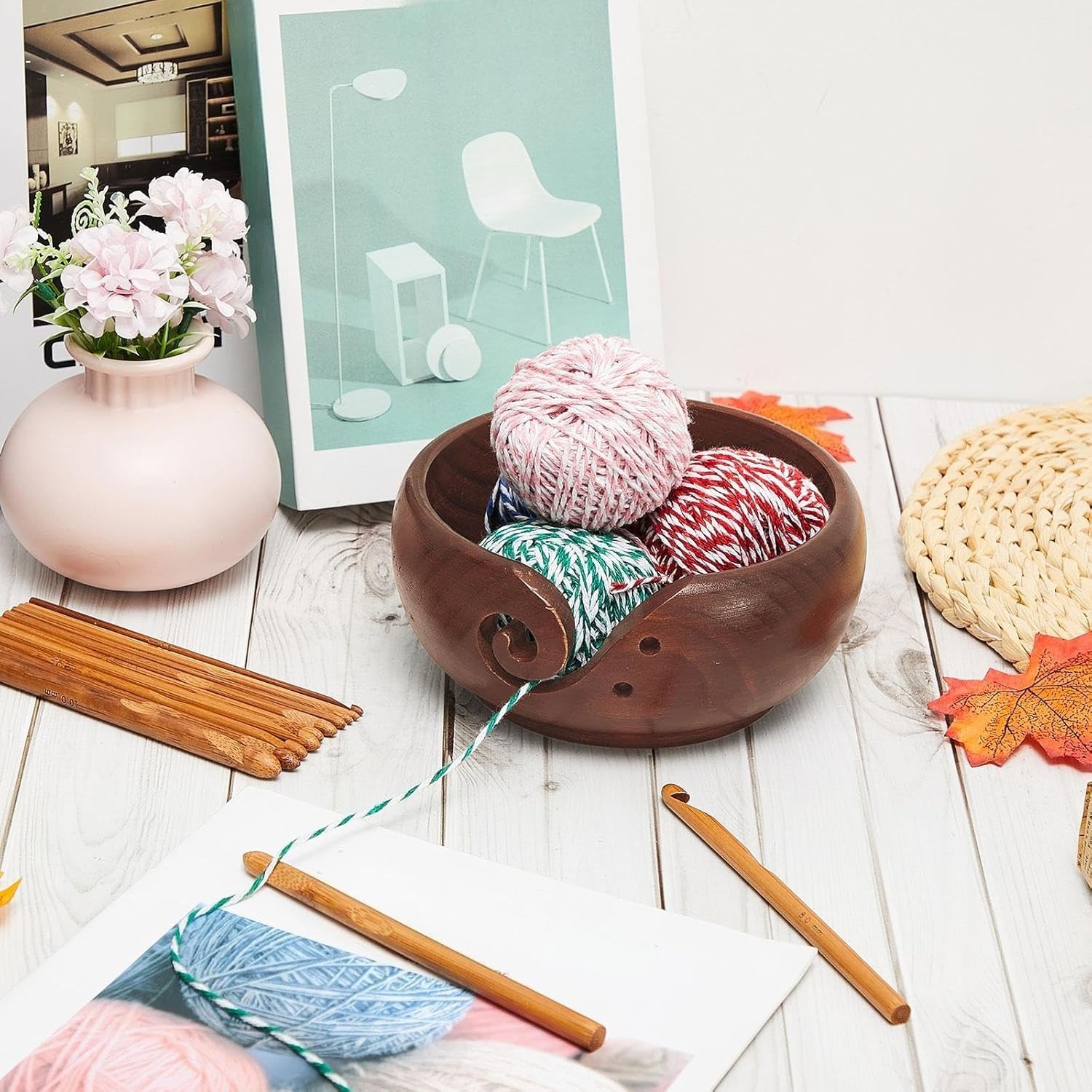 Wooden Yarn Bowl, Yarn Holder Bowls for Knitting Crocheting Handmade Yarn S...