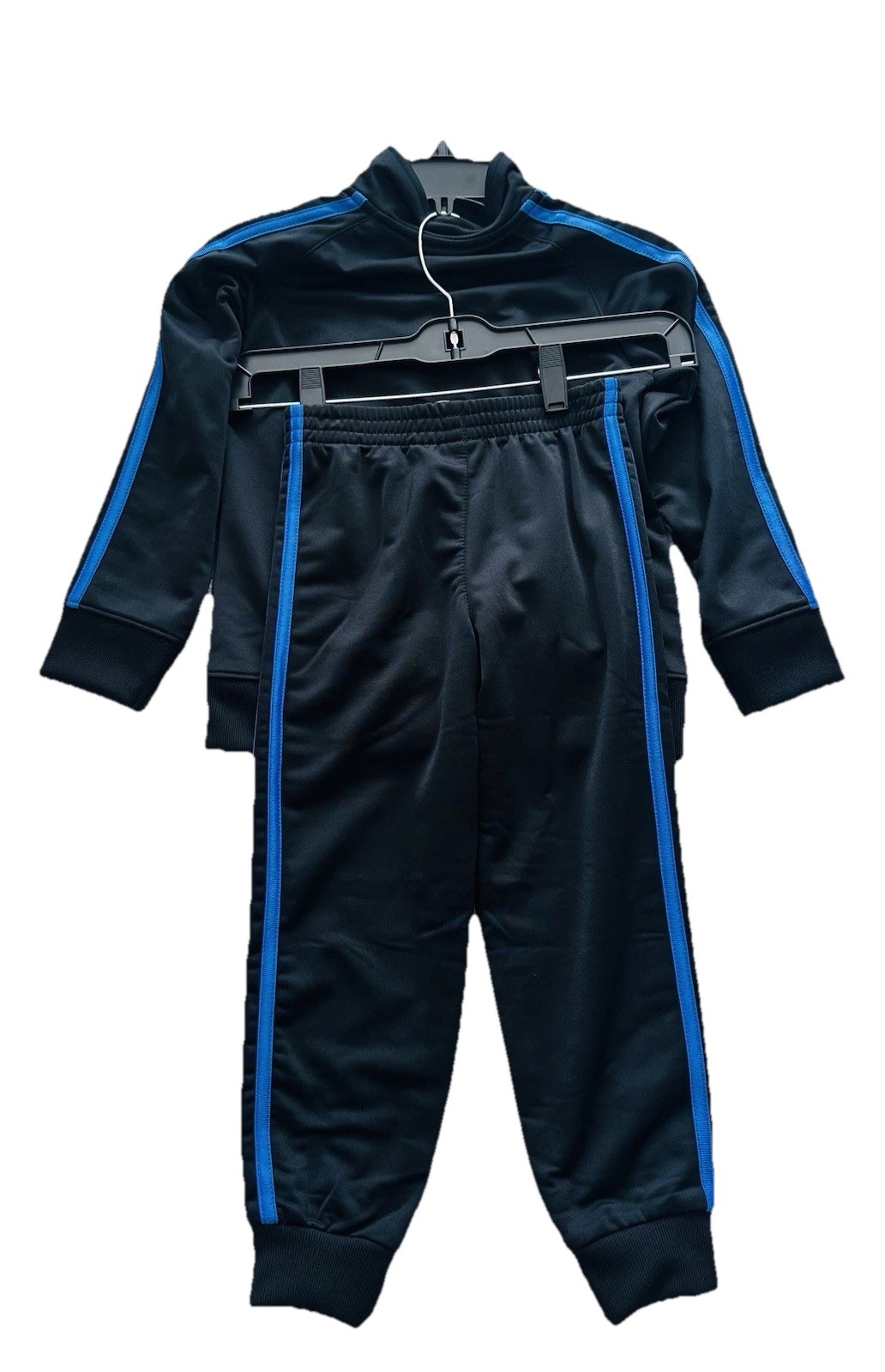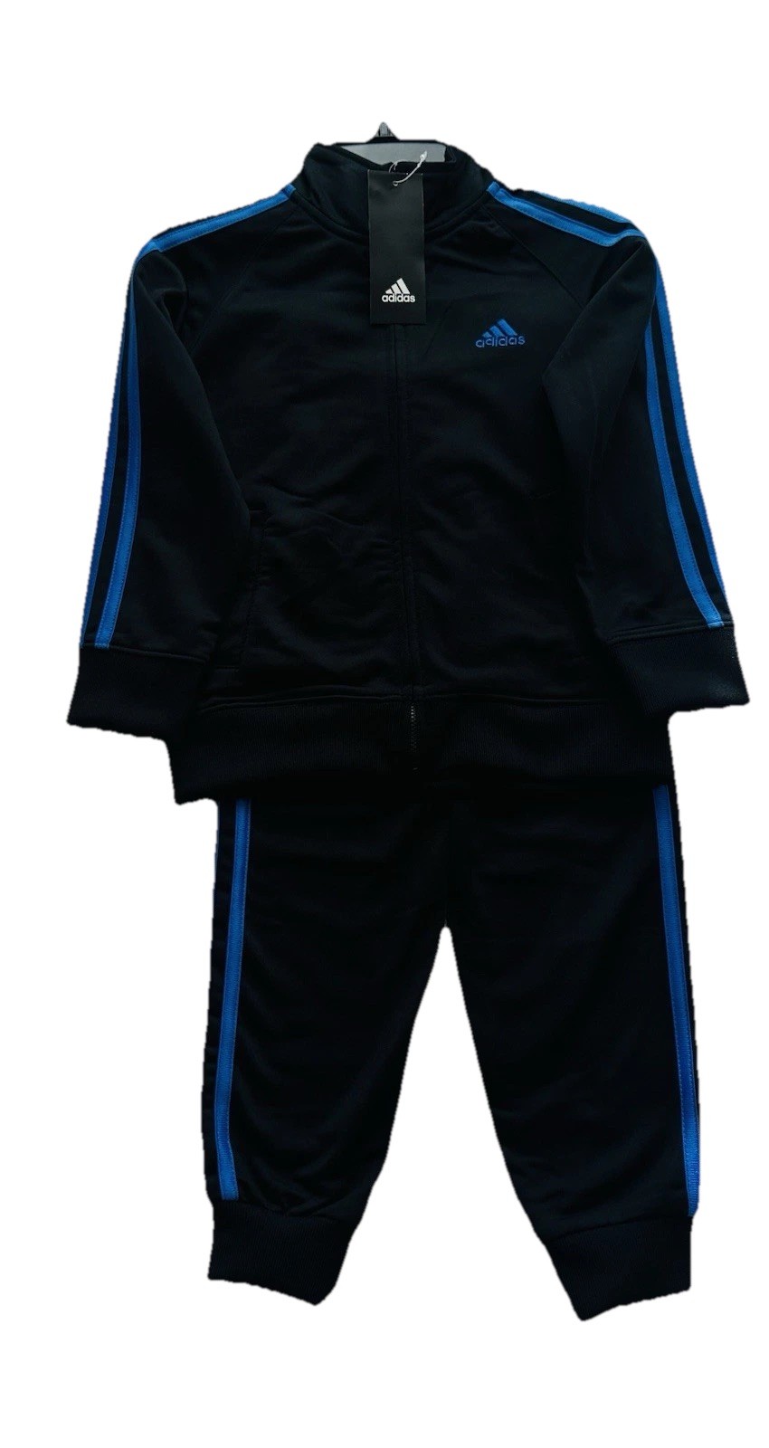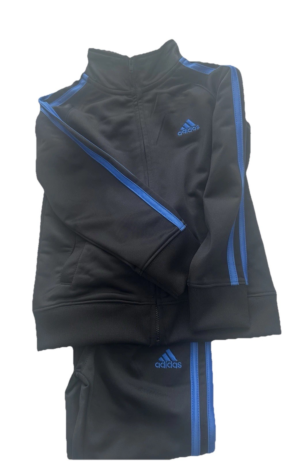 NEW Adidas Kids Size 5 Black Blue Tracksuit Set Jacket Pants 3 Stripe Logo