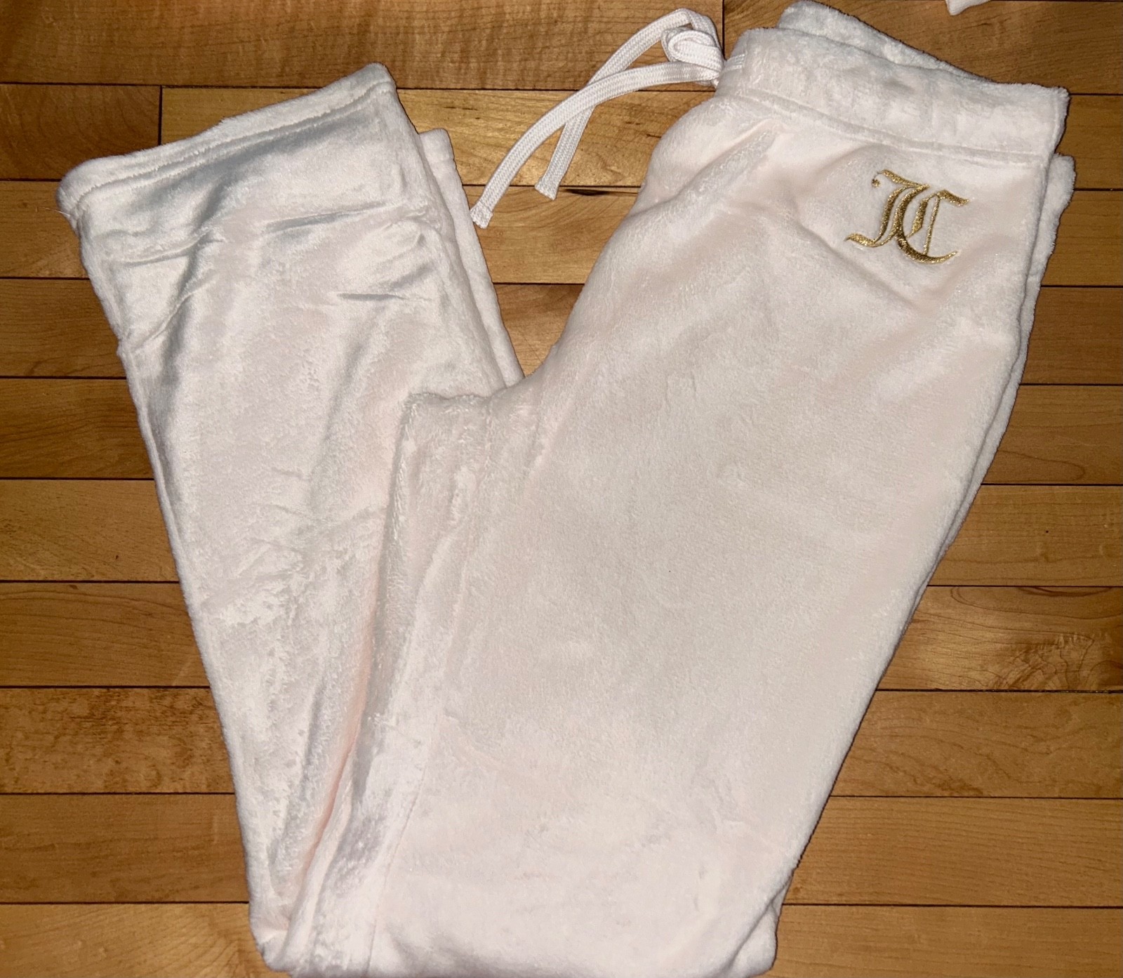 NEW NWT JUICY COUTURE Plush Fleece Logo Hoodie Pant Set White Ivory Size S