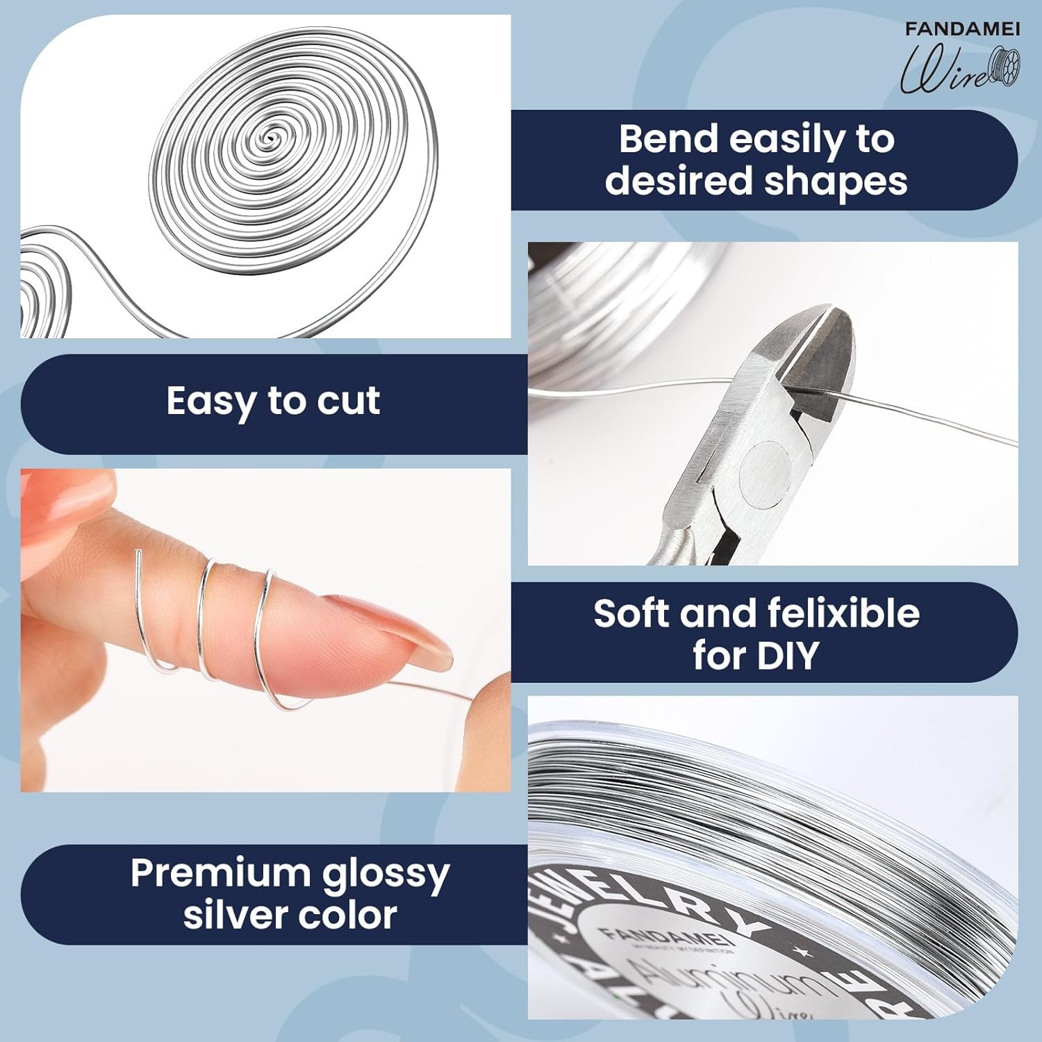 FANDAMEI Craft Wire 20 Gauge 98 Feet, Silver for Jewelry Making,