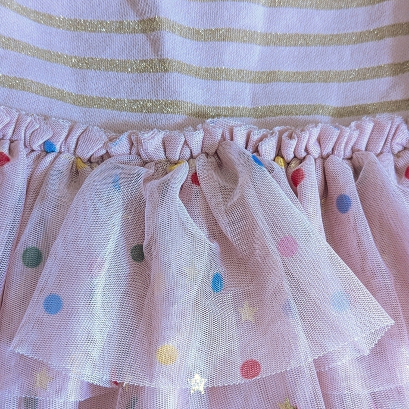 Mini Boden Light Pink Gold Striped Polka Dot Tulle Summer Tank Princess Dress