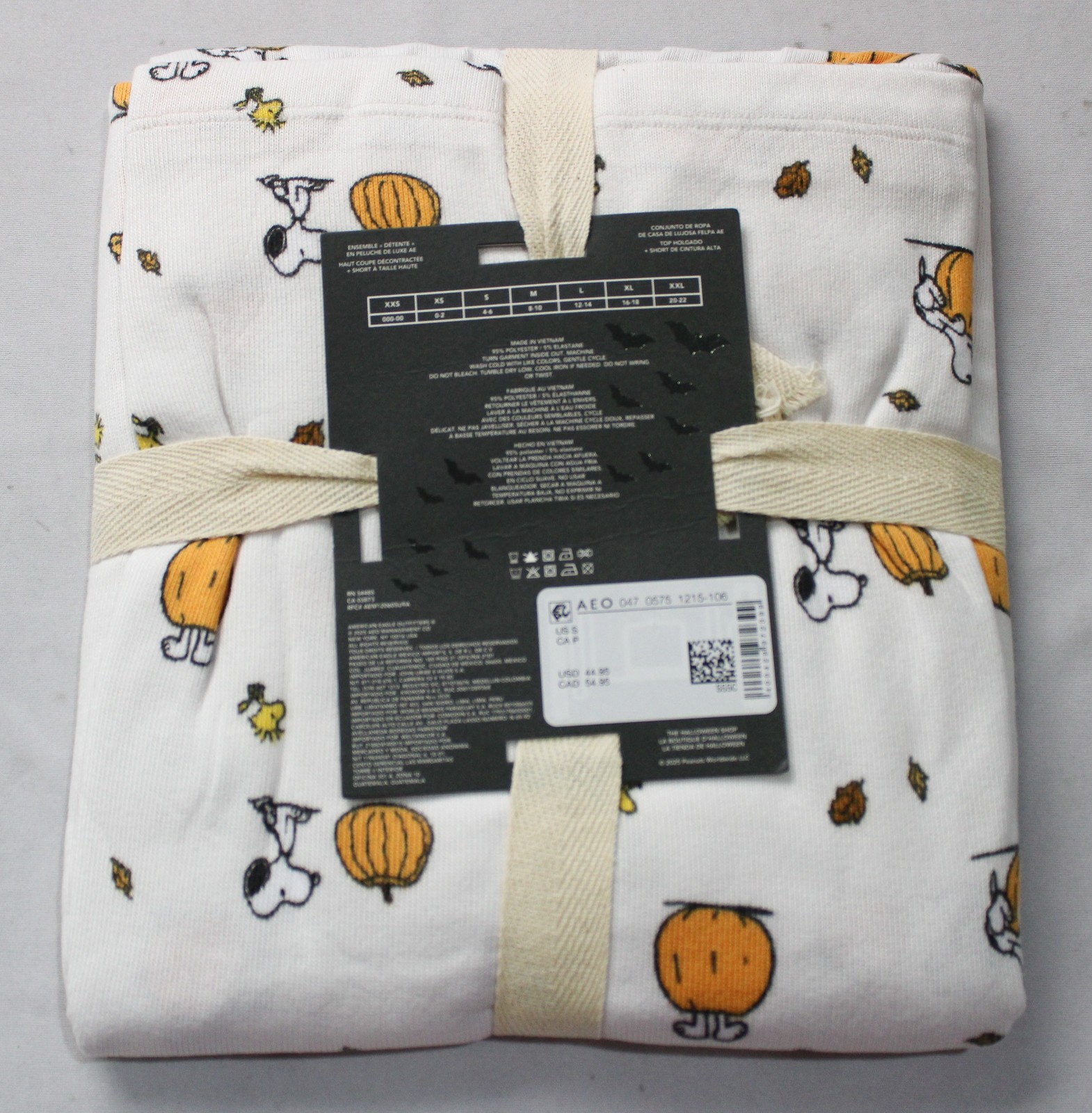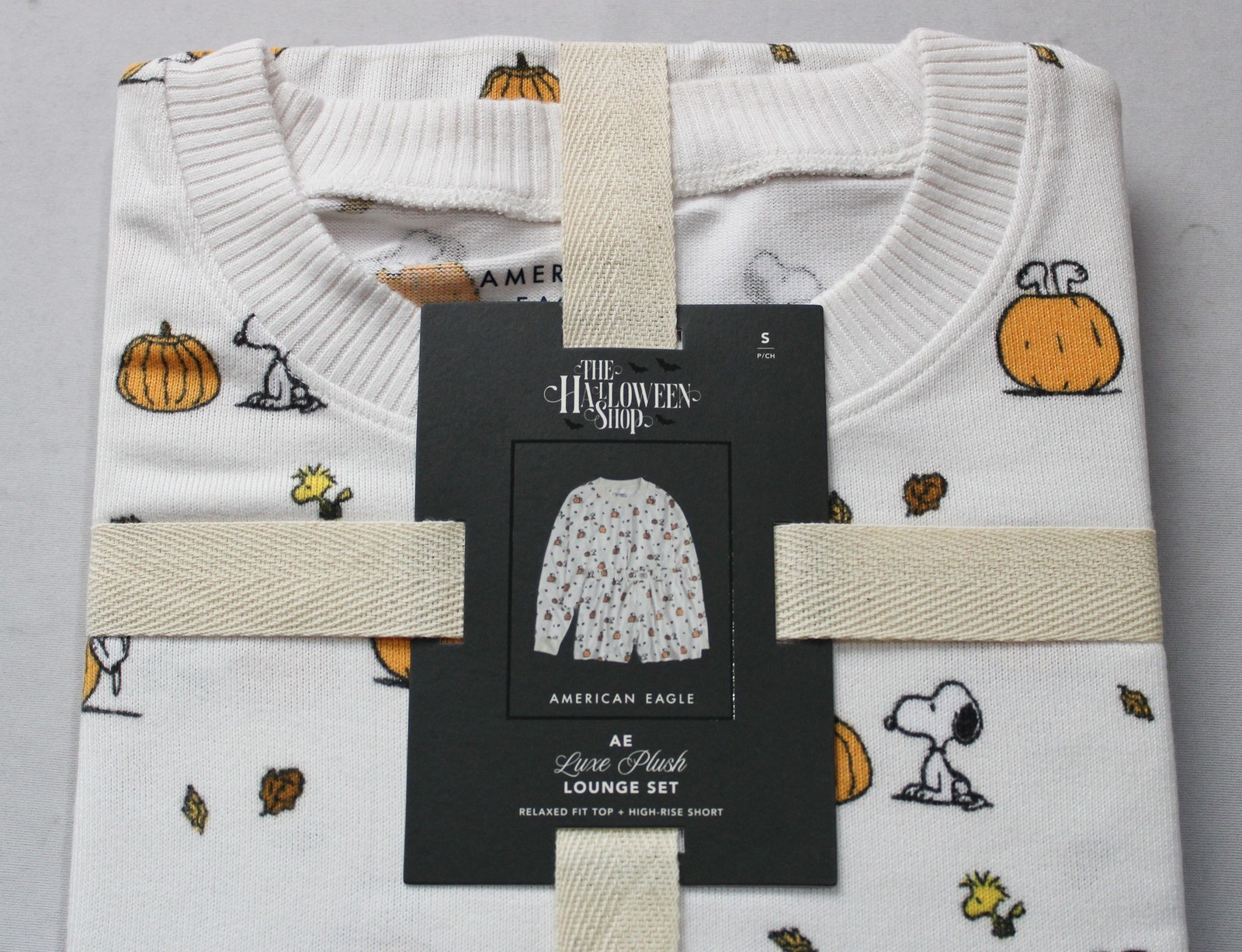 American Eagle Women's Luxe Plush Snoopy Halloween PJ Set AP2 Cream Small NWT