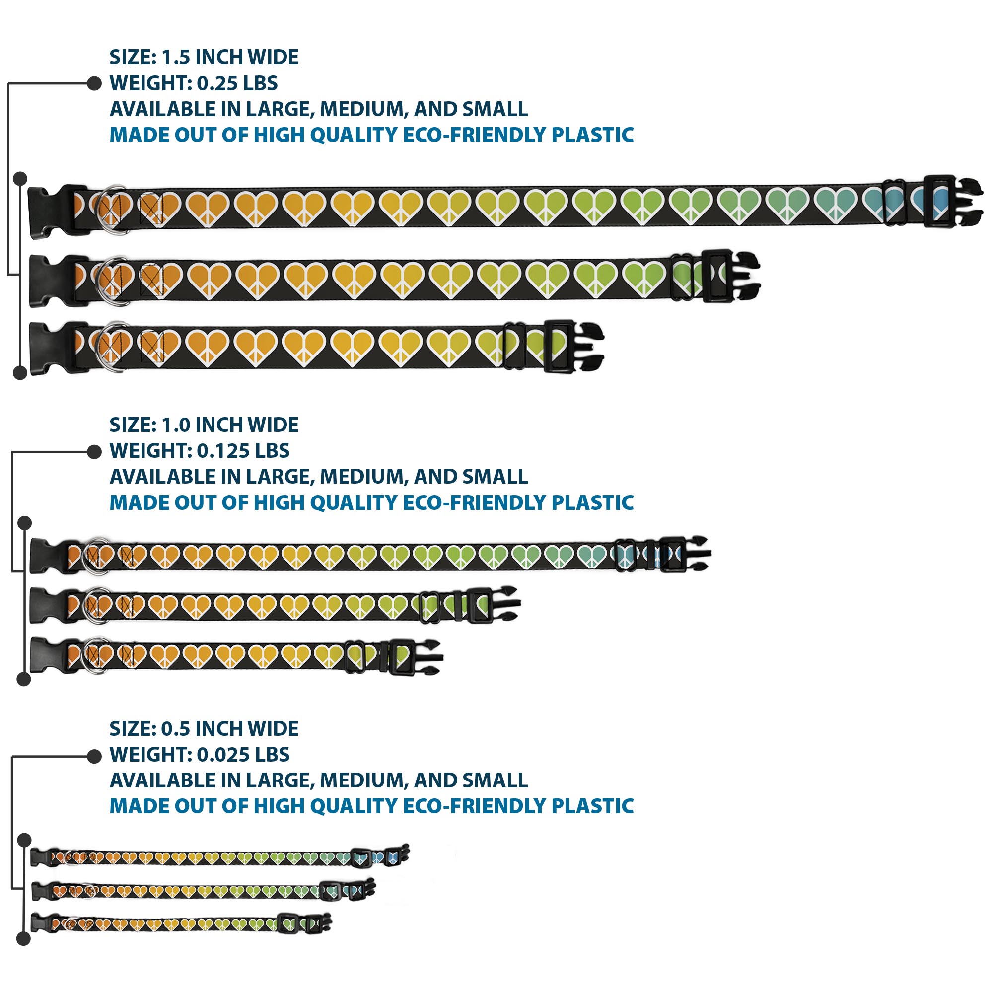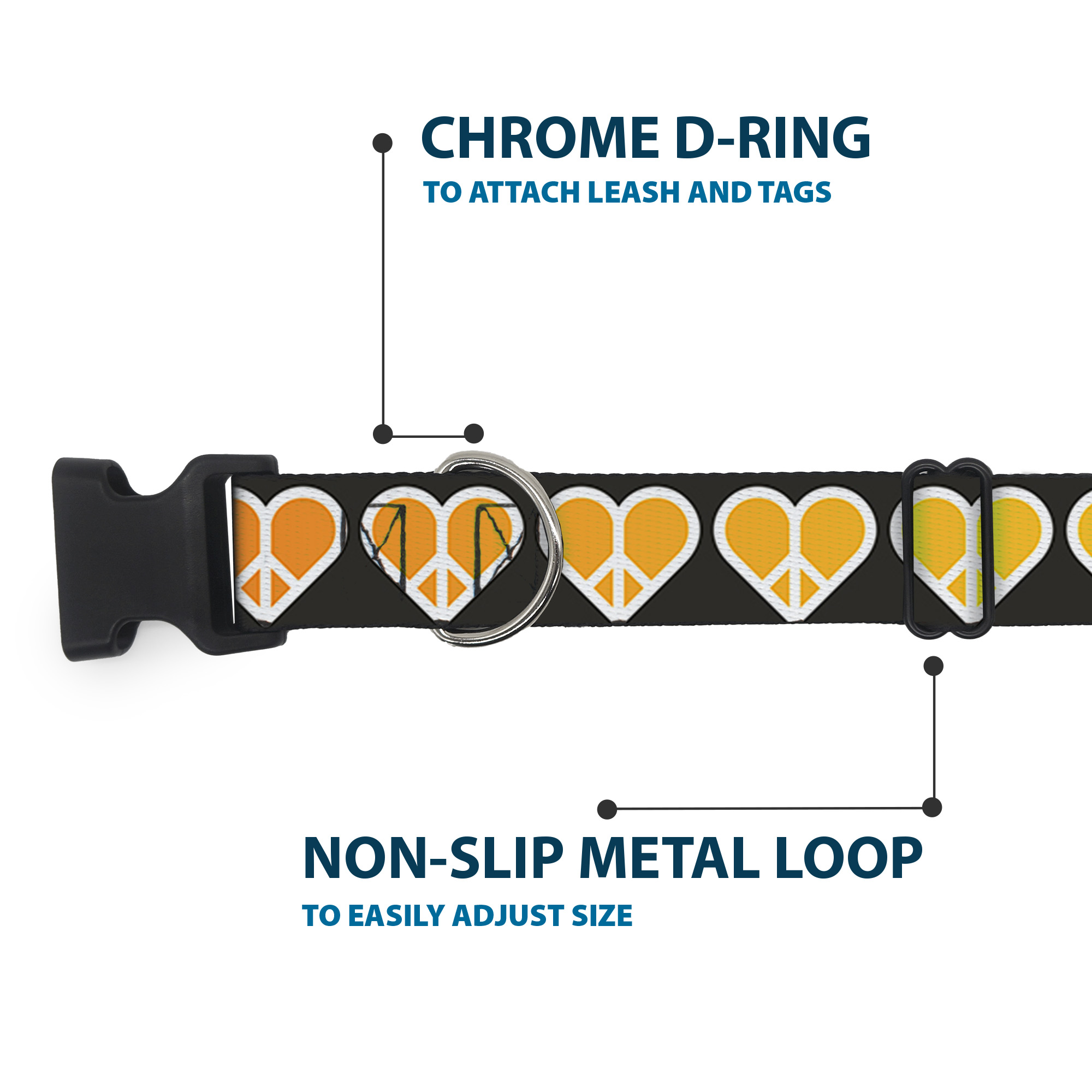 Plastic Clip Collar Peace Hearts Repeat Fill Black/Rainbow WIDE-Medium 16-23