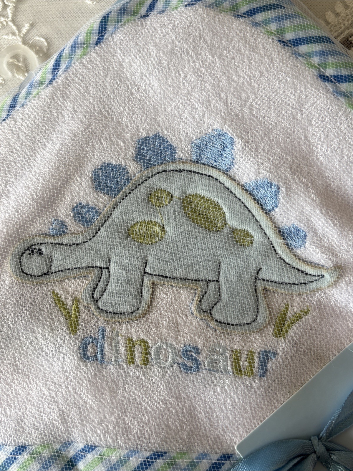 как выглядит CARTER S Hooded Towel Washcloth Set Dinosaur 28" X 34" Green/Blue Trim NEW фото