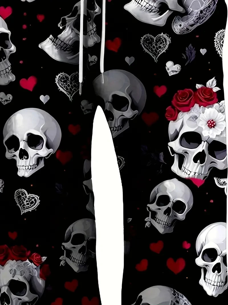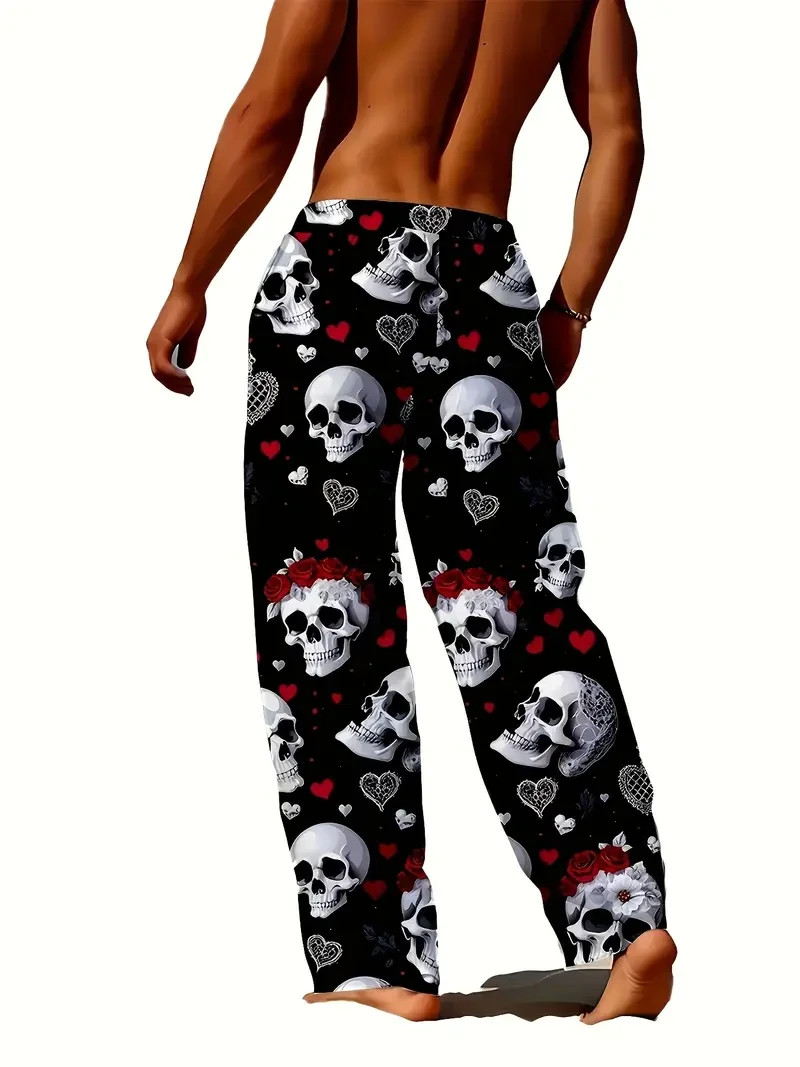 Romantic Skulls Roses Black Loungewear Pajama Pants 3D All Over Print