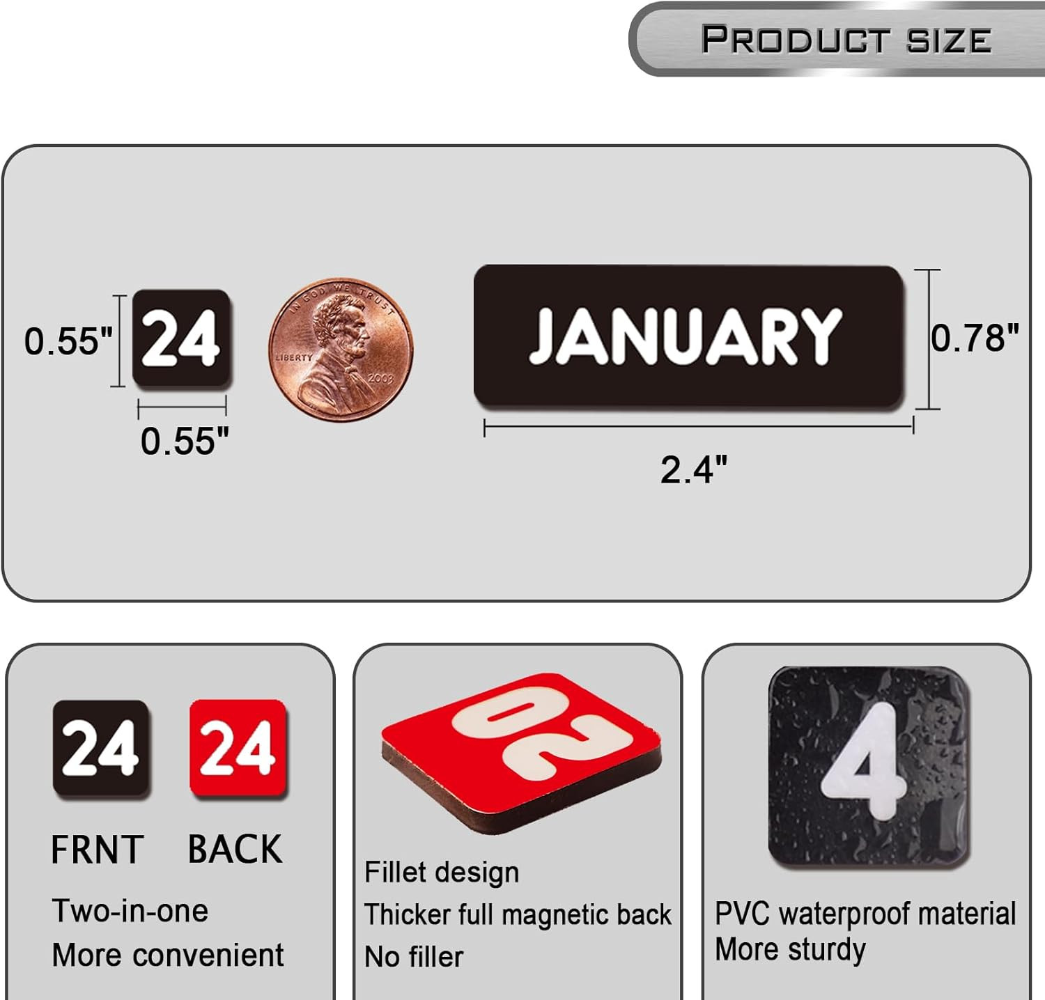 Double-Sided Magnetic Numbers and Months for Dry Erase Calendar Whiteboard, Cale