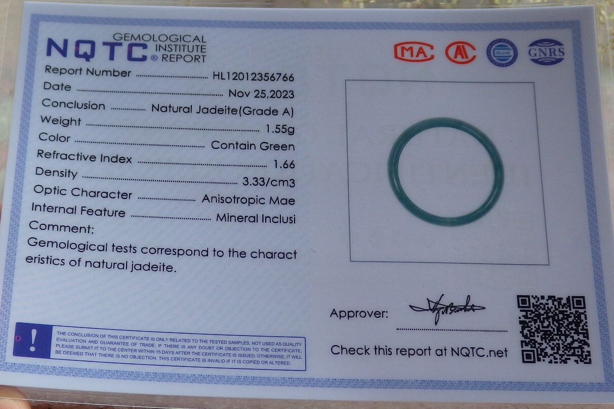 Video Certified Green Natural A JADE Jadeite Circle RING USA. 7.75 642185 AS