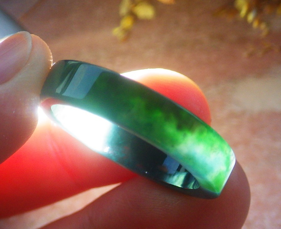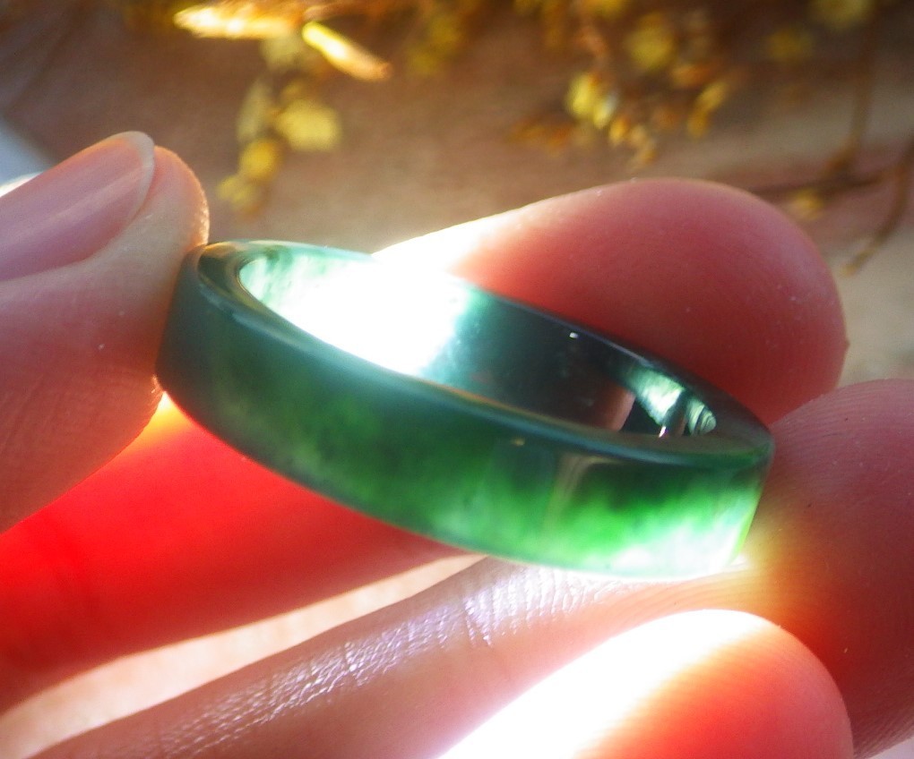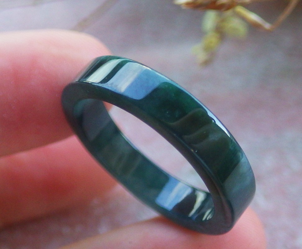 Video Certified Green Natural A JADE Jadeite Rectangle RING USA. 9.75 945882