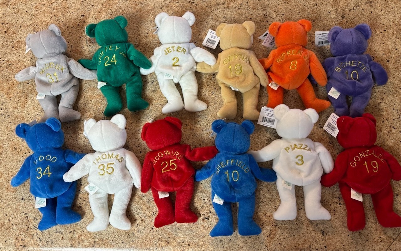как выглядит COMPLETE SET OF 12 SALVINO 1998 MLB BAMM BEANO BEANIE BABY BEARS New w/ Tags фото