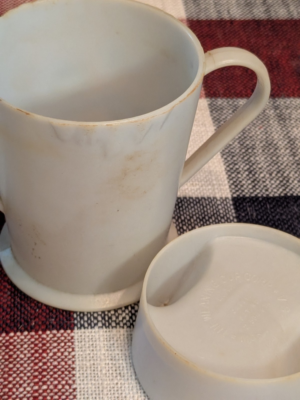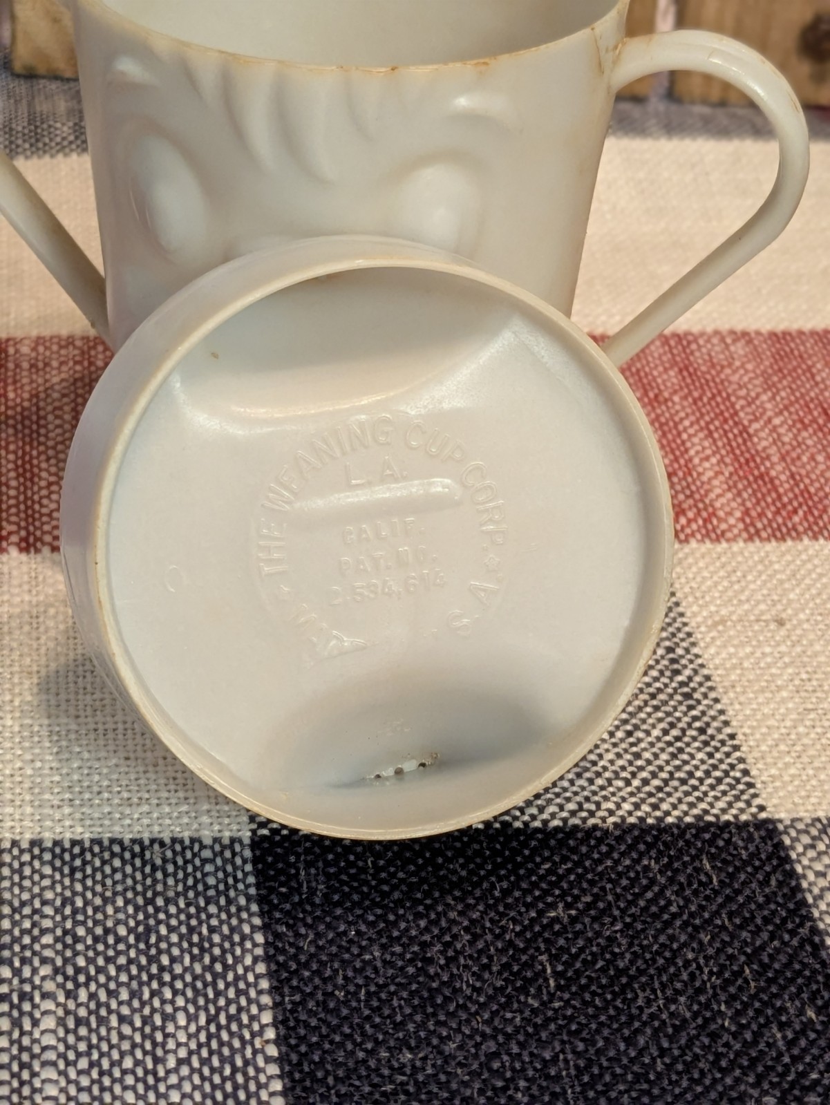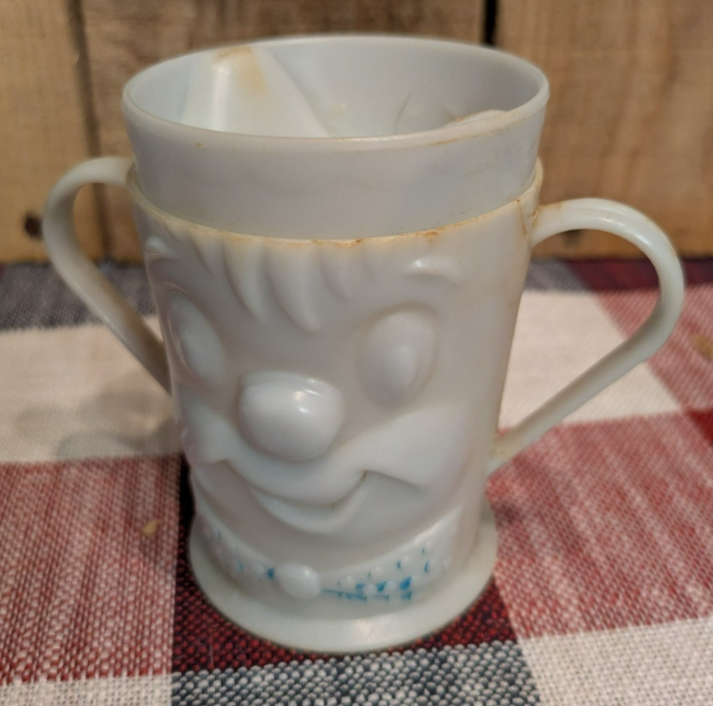 как выглядит Vintage 1950 s Double Handled Sippy/ Weaning Cup, With Lid, Made in USA фото