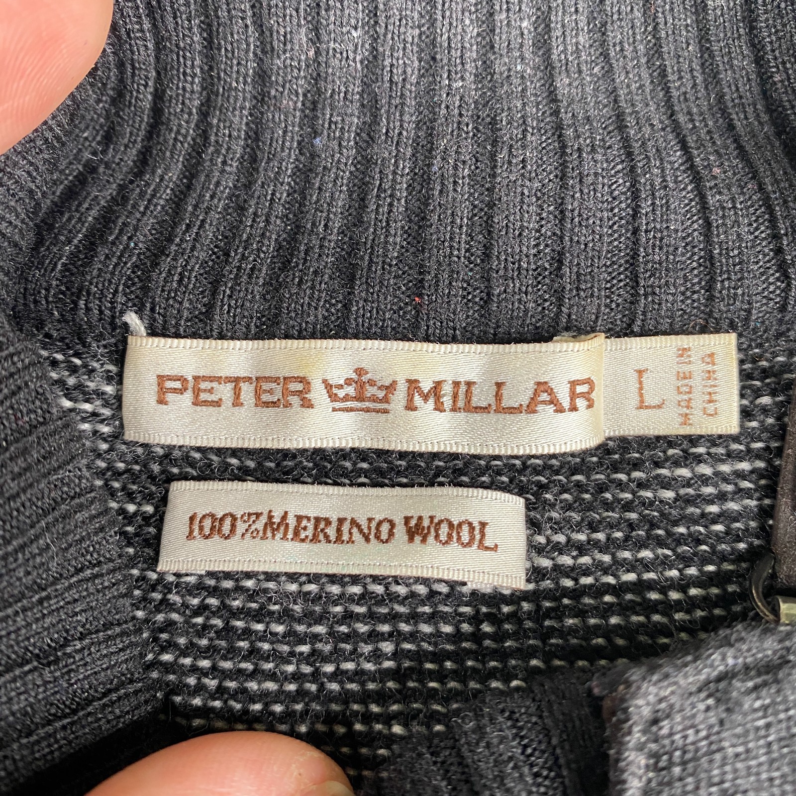 как выглядит Peter Millar Sweater Mens Large Gray 100 Merino Wool Knit 1/4 Zip Pullover фото