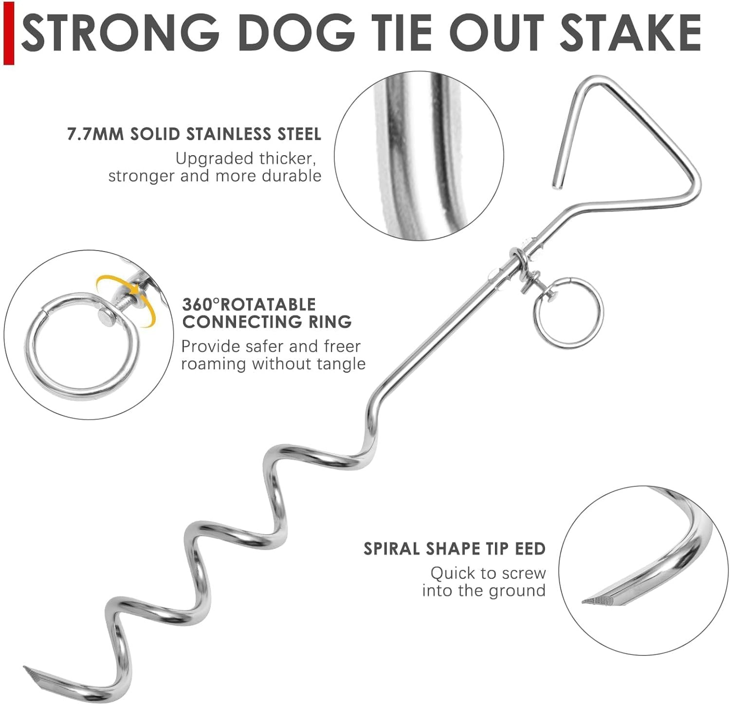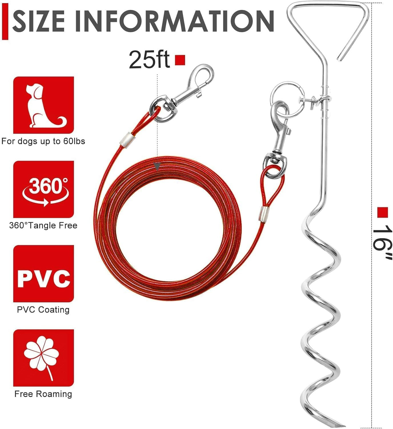 Dog Tie Out Cable and Stake,25FT Long Dog Leads Chain for Yard,Camping and Ou...