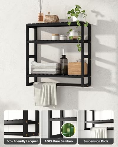 3-Tier Over Toilet Storage Shelf, Wall-Mounted Bamboo Organizer, Black