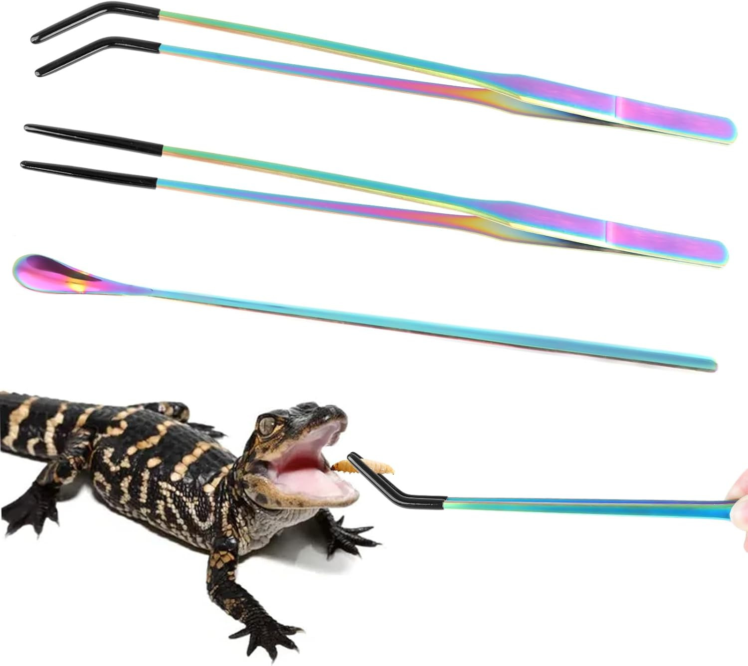 3PCS Stainless Steel Reptile Feeding Tongs with Rubber Tip, Extra Long Straight