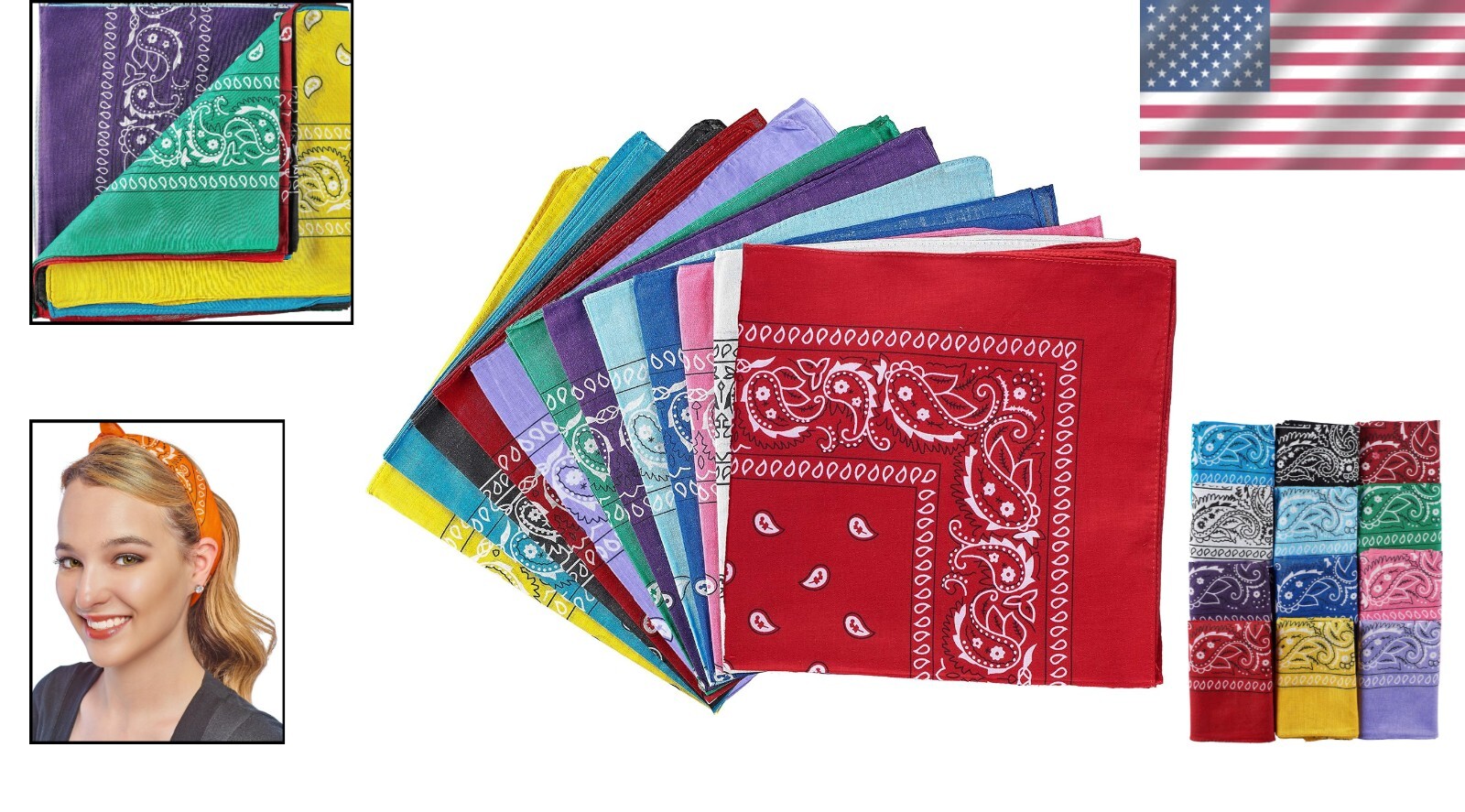 Classic Set of 12 Double-Sided Paisley Bandanas - Ideal for Every Occasion