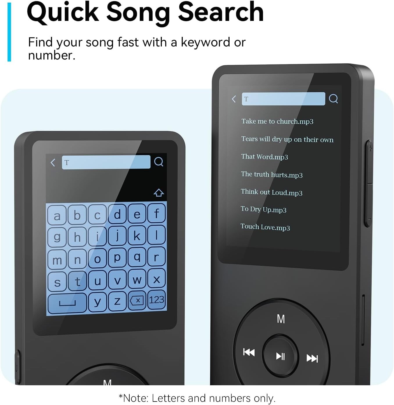 All-in-One Bluetooth MP3 Player - 1.8-Inch Screen, FM Radio, Voice Recorder