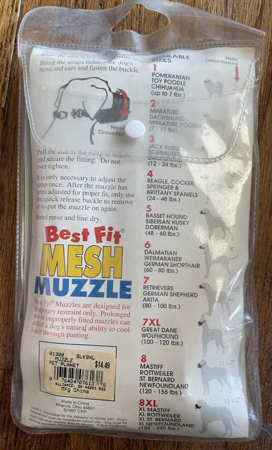 Coastal Pet Best Fit Mesh Dog Muzzle Size 8XL For X-Large Short Nosed Breeds NEW