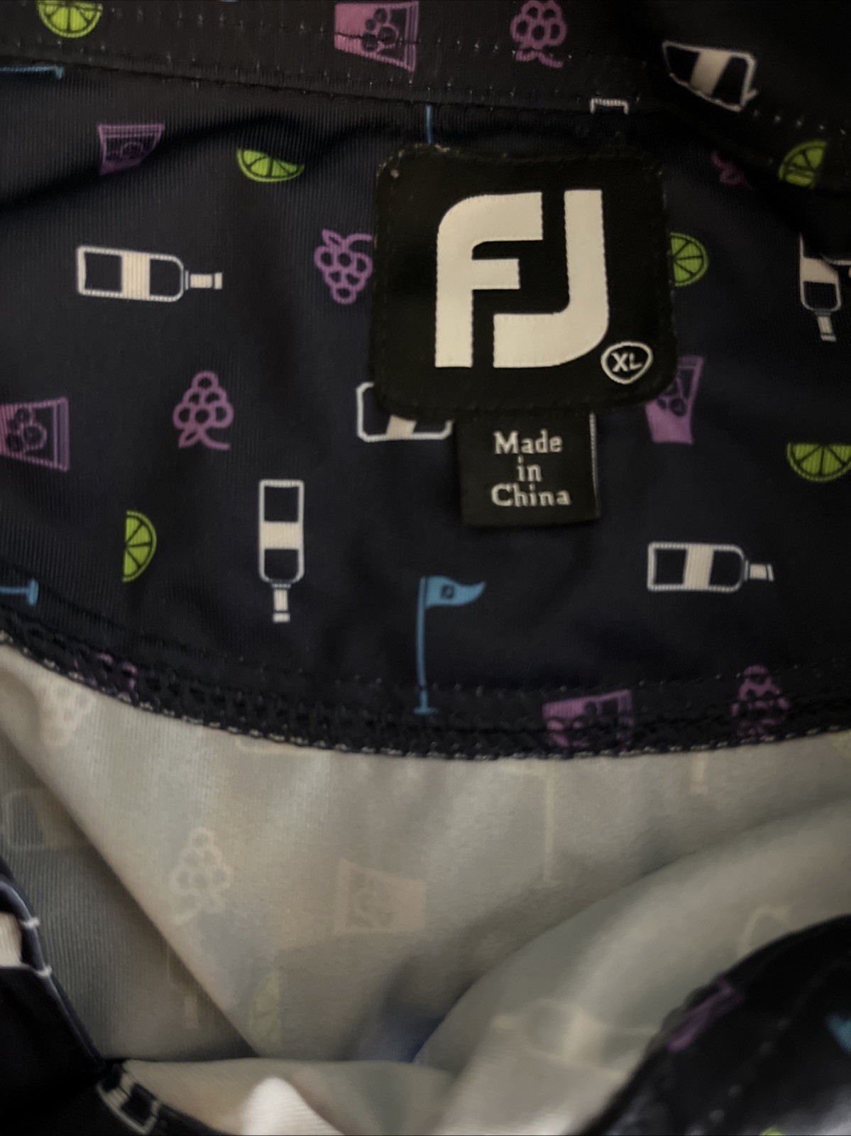 как выглядит Footjoy Polo Shirt Men s XL Golf All Over Print Grape Wine Flag Lime Stretch фото