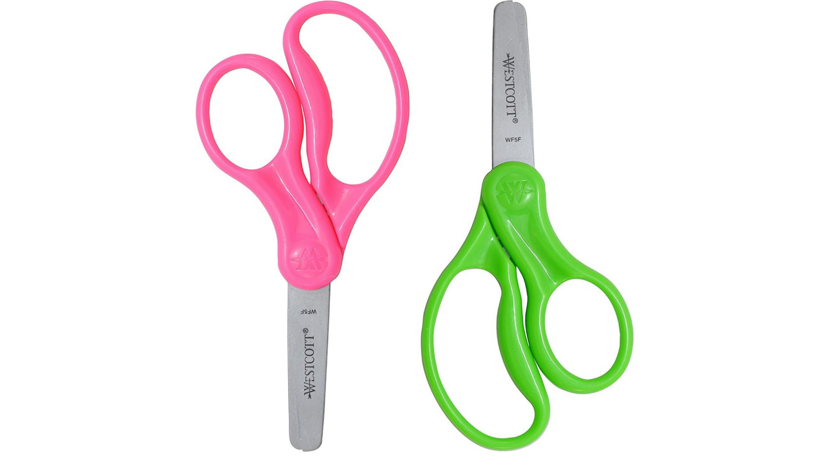 4 Pk Westcott 5 Kids Blunt Scissors, 1 yellow, 1 green, 1 pink 1 blue.