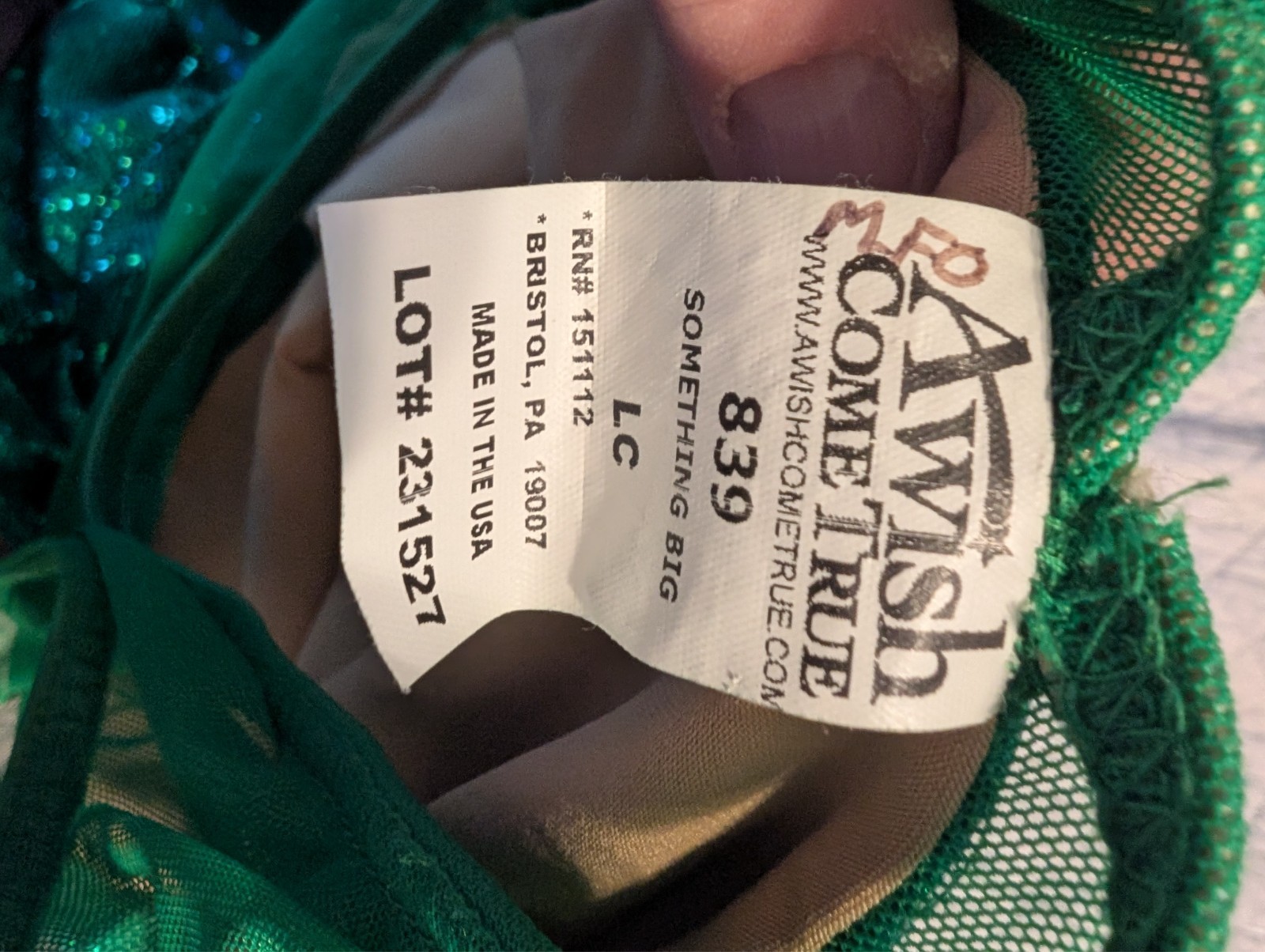 A Wish Come True Holographic Green child Costume