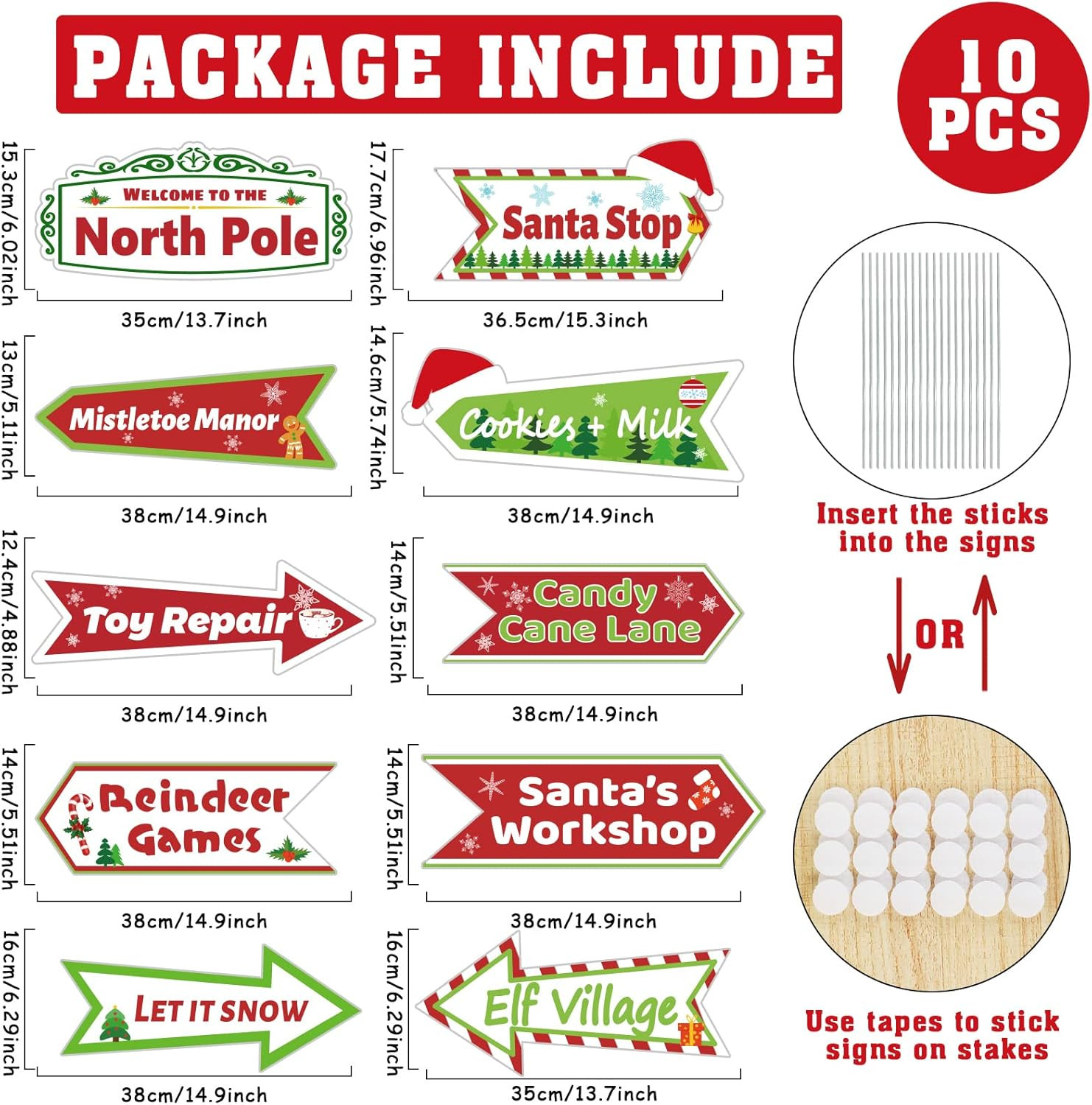 Included Components: 10pcs Christmas North Pole yard signs, 16 plastic stakes
