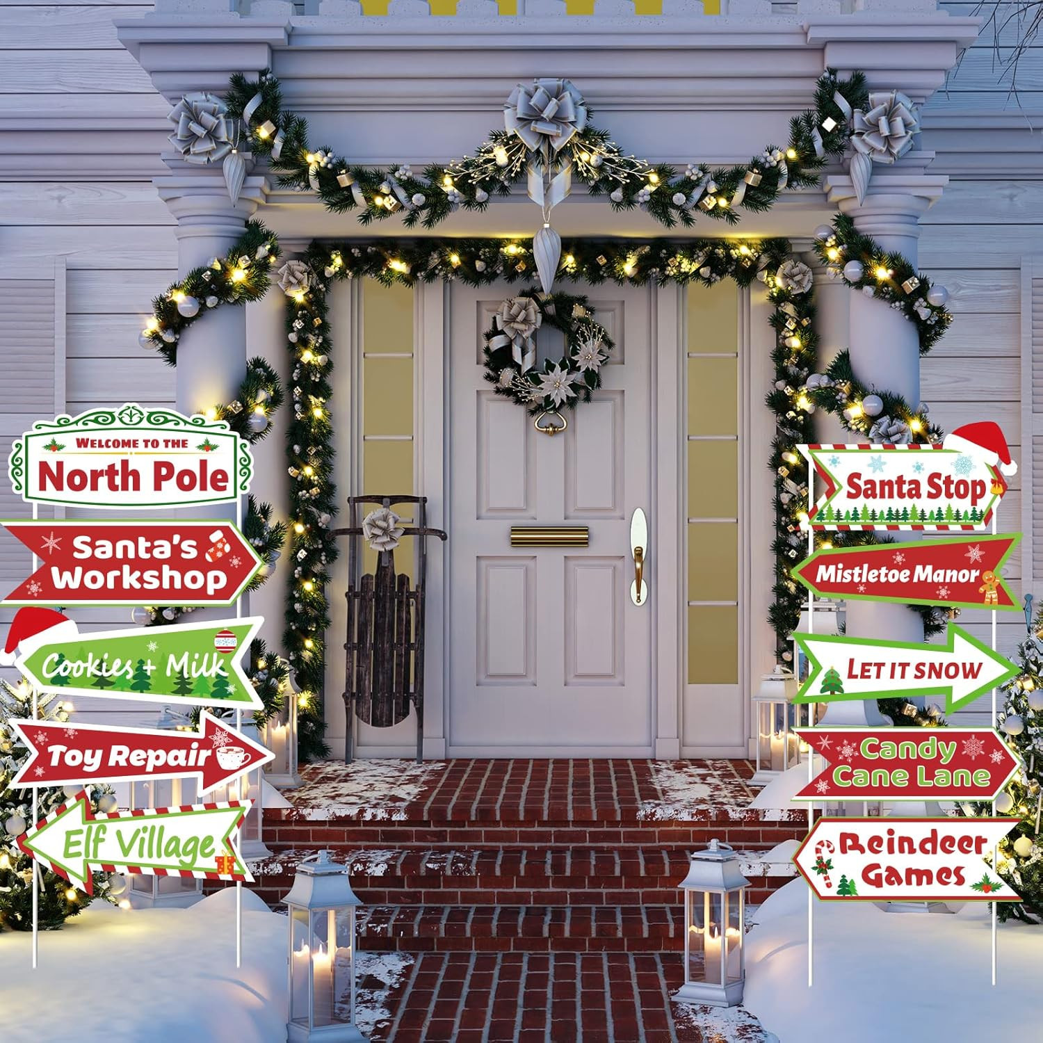 10Pcs North Pole Yard Signs Christmas Lawn Outdoor Decoration for Xmas Winter Ho
